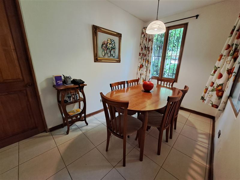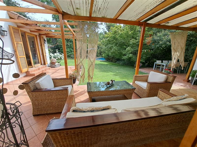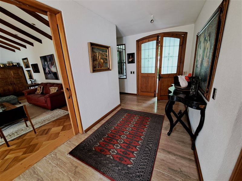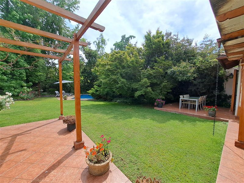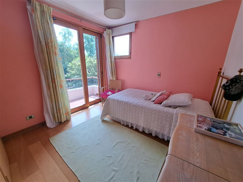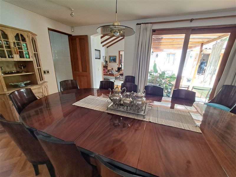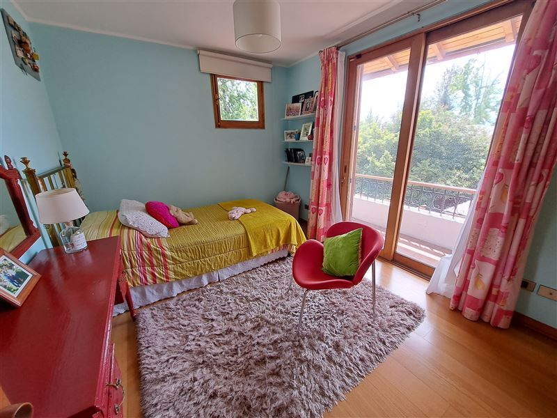 Maravillosa casa estilo colonial con un lindo jardín y muchas zonas diferentes de descanso en Los Dominicos, calle de gran plusvalía y seguridad.1er piso: Hall de entrada amplio con linda vista al jardín, grandes recibos separados con salida a terrazas y al jardín, cocina amoblada y equipada con comedor de diario separado, servicios y lavadero, 1 salas de estar , escritorio o 5 to dormitorio), 2 baños (1 vista), dormitorio principal en suite con w.closet y vista al jardín y terraza.2do piso: estar, 3 dormitorios ( 1 con balcón) , 2 baños.Exteriores: piscina, terrazas, sector quincho muy acogedor y entretenido, 4 estacionamientos techados, patio de servicios amplio, bodegas,Interior: pisos de madera y parquet, mármol entrada