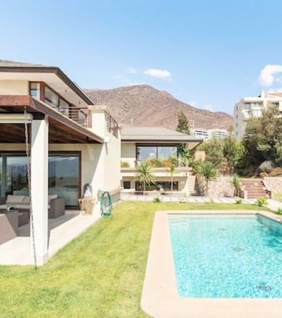 imados y proporcionados por los dueños****300/900 ms App. Espectacular casa amoblada en niveles vista despejada en sector exclusivo y residencial San Carlos Apoquindo a pasos de Colegios Padre Hurtado, Juanita de los Andes a 10 minutos de metro Los Dominicos. 5 dormitorios 7 baños 2 salas de estar. En subsuelo un dormitorio en suite o sala de estar, Primer nivel: Amplio hall de entrada living comedor separados en niveles con salida a cómoda terraza techada, baño de visitas gran dormitorio principal en suite con walk in closet, salita y terraza. cocina equipada comedor de diario, loggia., Segundo nivel, 3 dormitorios 2 baños y salita.Jardín diseñado por paisajista, piscina. ventanas termopanel, calefacción por radiadores, cerco eléctrico, seguridad 24/7. Gran terraza techada quincho en obra, piscina, baño sector piscina. Portón eléctrico, estacionamientos descubiertos para 4 autos. **** No se aceptan Mascotas **** Disponibilidad entrega 1 mes despues de confirmado el arriendo*** Los metros son aprox