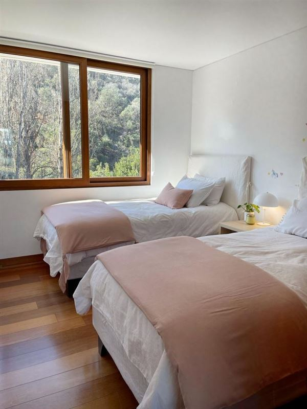 Linda casa mediterránea, con finas terminaciones y excelente distribución. Cercana al Colegio Craighouse en exclusivo condominio. Seguridad con guardias las 24 horas y acceso controlado. 320m2 construidos en terreno de 1.000m2 aprox.Descripción: 4 dormitorios, 4 baños, más pieza de servicio y bañoSala de estar y área de estudio.Pisos de madera y porcelanato, Termopanel 1er piso: baño visita, escritorio lado dormitorio principal en suite, con mueble en obra, baño principal con jacuzzi2do piso 3 dormitorios, dos baños, sala de estar y área de estudio. Lindo jardín con quincho, piscina y fogón. Seguridad con circuito cerrado de tv,