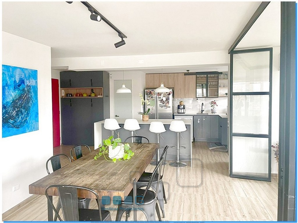 Hermoso y amplio departamento. Vista despejada, al nororiente. Amplios y luminosos recibos c/ cocina integrada. Logia. 2 amplios dormitorios con cortinas roller doble, Ppal.Suite. 2 baños. Aire acondicionado. Todo piso porcelanato. Estacionamiento, bodega