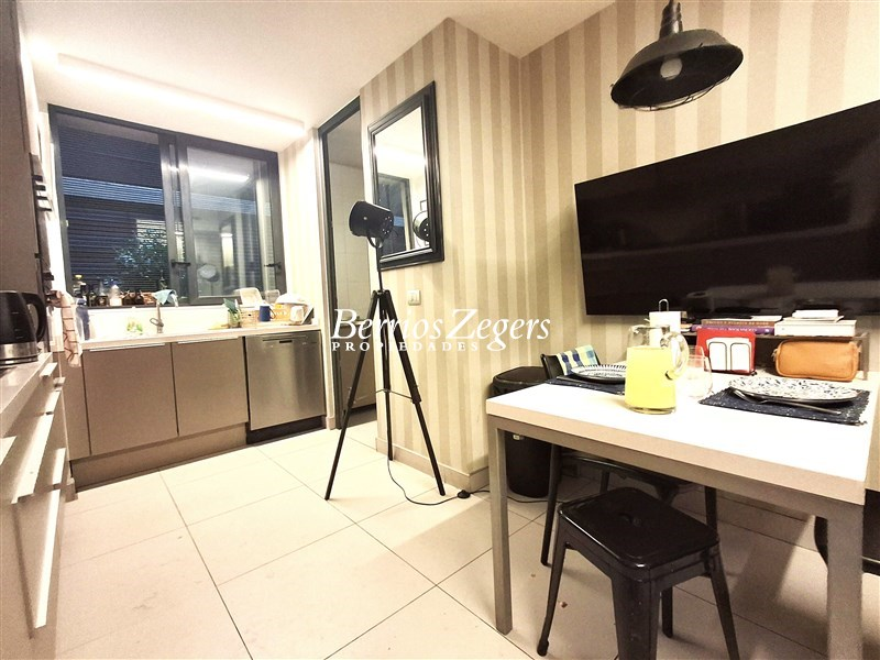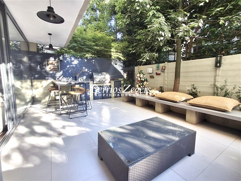 Precioso y amplio dpto en primer piso, a pasos del Portal de la Dehesa, costanera norte, y excelente concetividad. El departamento cuenta con hall de entrada, recibos juntos,con salida a gran terraza de aprox 120 mts. aprox., baño de visitas, 3 dormitorios el ppal en suite con w-closet, mas servicios completos, cocina espaciosa, equipada, con comedor de diario, completamente amoblada, loggia. tiene 2 estacionamientos, 1 bodega, y orientación Poniente. el edificio cuenta con espacios comunes como piscina, Gym, sala de eventos, estacionamientos de visita, acceso controlado 24/7