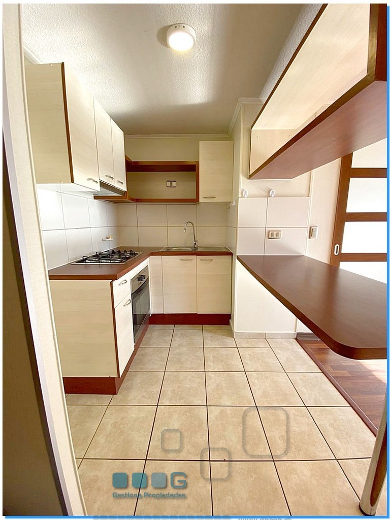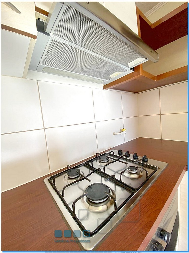 Recibos, 1 dormitorio en suite, 1 baño. Cocina americana amoblada y equipada con encimera 4 platos, horno, campana. Edificio cuenta con sala de eventos, gimnasio, juegos infantiles, piscina.