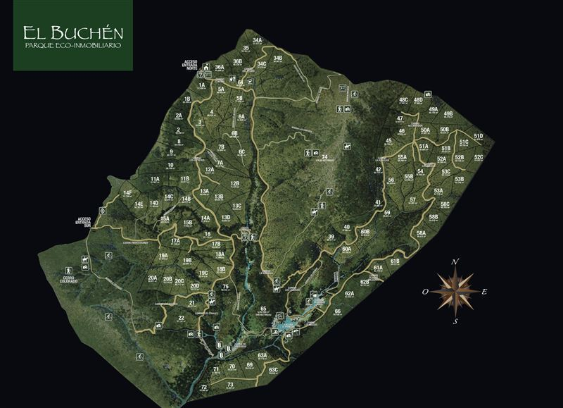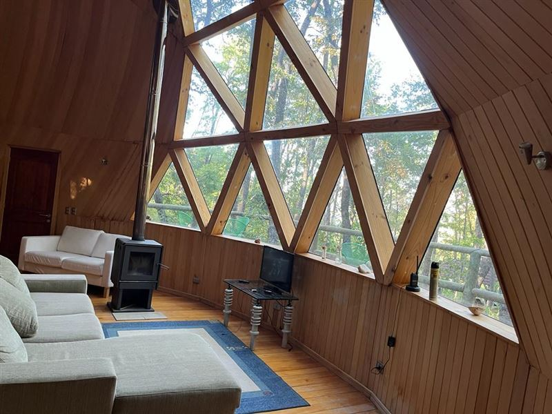 Parque El Buchén es un proyecto eco-inmobiliario constituído por fundos cuyas superficies fluctúan entre 5 y 9 hectáreas lo que abarca un total de 500 hectáreas, más un parque común de 1.000 hectáreas, es decir 1.500 hectáreas que lo convierten en un escenario ideal para descansar y desarrollar actividades en familia como trekking, cabalgatas, paseos en bicicleta, excursiones y pesca deportiva.EL ESPÍRITU DE LA MONTAÑA:El paso desde la ciudad a la montaña nos conduce a una profunda transformación espiritual. Respirar, sentir, entender, conocer y compartir, son algunas de las muchas experiencias para los sentidos, en unión con la tierra y la inmensidad de la naturaleza en su estado más puro e intocable.SE VENDE : 85/ 55.657 m2 aprox, Maravilloso Domo inserto en la naturaleza, con hot tub, y quincho, 3 dormitorios ppal en suite en el 1er. piso mas otro baño completo, y en el 2do piso; dos amplios dormitorios mas sala de estar ó 4to. dormitorio, eléctricidad con paneles solares c/baterias y además hay generadores el agua, la entrega el condominio a cada propietario (10,000 lts) que están en dos entanques de 5.000 lts. cada uno, lo que funciona perfecto, por efecto gravedad, ya que los estanques estan mas altos que el domo, agua caliente con calefont . terreno de 5 hectareas