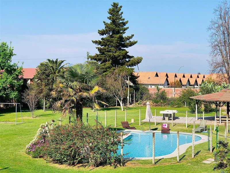 Hermosa parcela ubicada en excelente sector de Peñaflor. 294m2 de construcción en 2 pisos en donde se distribuyen amplios espacios.1° piso, amplio estar familiar, comedor, dos habitaciones, cocina recién remodelada, baño de visita, pieza y baño de servicio.2° piso, 3 dormitorios, el principal en suite, más un baño compartido. Todas las ventanas de termopanel.Exterior: quincho, piscina, casa del árbol, grandes espacios de naturaleza con árboles frutales, distribuido en 5700 m2. Portón eléctrico, cerco eléctrico, conserje. Condominio de 16 parcelas, agua de pozo común mas pozo propio (no se paga agua)Gastos comunes $ 100.000