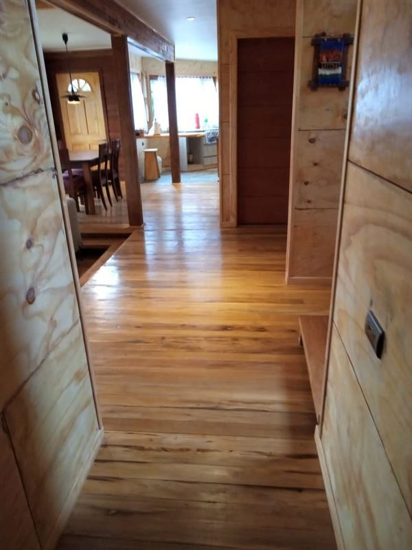 198/ 33.000 m2 de terreno. OPORTUNIDAD!!! Ideal para inversionistas. La propiedad en venta comprende 3 lotes que suman 3,3 hectáreas con camino, planicies y bosque nativo, pozo de agua, proyecto eléctrico, sanitario y red de agua todos certificados, todo urbanizado.La construcción es de 198,92 mts2, la casa tiene en el primer piso, estacionamiento techado para 2 vehículos, lavadero, amplio quincho, amoblado, lavandería equipada, cocina chilota equipada con marca teka, espacio para el flojero, living comedor, chifonera, 2 baños, 3 habitaciones con sus clóset y amplia terraza panorámica que comunica el quincho y el comedor. Hermosa escalera que lleva al segundo piso. El segundo piso lleva a un ala con amplio sector en suite con habitación, baño y walk in clóset, la otra ala del segundo piso cuenta con una amplia sala de estar con clóset y una bodega interior.Todas las habitaciones están equipadas con camas rosen de excelente calidad, en total suman 3 camas nidos de plaza y media, cama matrimonial king italiana y súper king.La construcción está realizada con los mejores materiales usando madera noble, el mejor material de aislamiento y todos los pisos están vitrificados, la cocina, el lavadero y el flojero tienen piso de precioso porcelanato.La casa cuenta con ventanas amplias que priorizan la vista del lugar, todas las ventanas están en termopanel de alta resolución para el viento, la lluvia y el frío. También cuenta con chimenea Amesti en el living, según última tecnología y diseño.La casa cuenta con 2 calefont de alto alcance cúbico dejando separado el primer piso del segundo, por lo que permite mejor funcionalidad y eficiencia.Se cuenta con una bodega de 26 metros cuadrados y todas las herramientas necesarias para la mantención del jardín y el predio en general, cortadora eléctrica de pasto, carretilla, escalera, herramientas para cortar leña.Se cuenta con pozo de agua y 2 contenedores de agua de 500 litros cada uno.