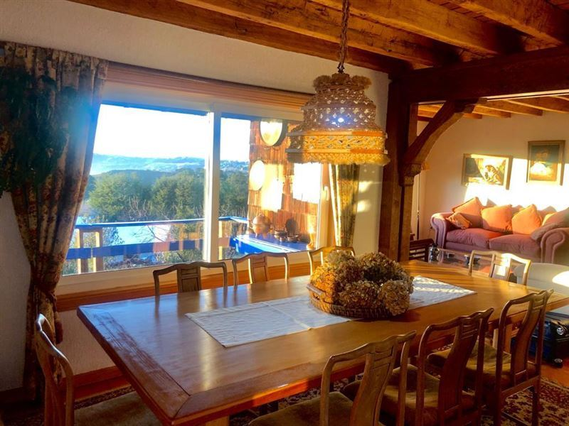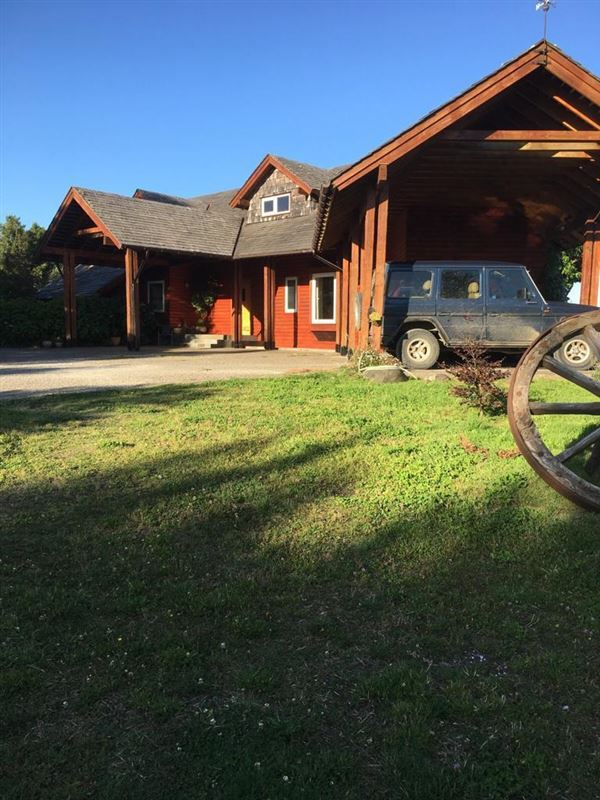 6.500 m2 aprox hermosa casa en lugar privilegiado, con vista a canales y volcanes, a 300 m de la carretera y a 600 m del futuro by pass.La casa de 265 m2 consta de 4 dormitorios (principal suite); 3 baños; Cocina americana; Comedor y living; 1 sala estar; 1 estudio oficina;Lavandería ; Despensa; Pieza y baño servicio. Ventanas termopanel, Pisos de Hormigón liviano. Caldera a petróleo, Agua pozo vertiente propia y agua pública APR.además incluye un estacionamiento techado para 3 autos de 164 m2.