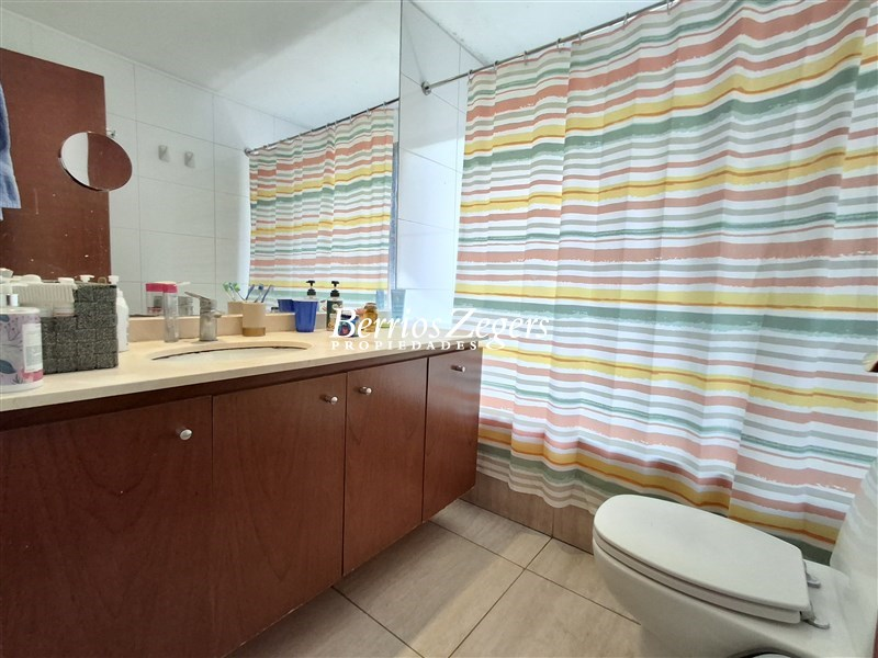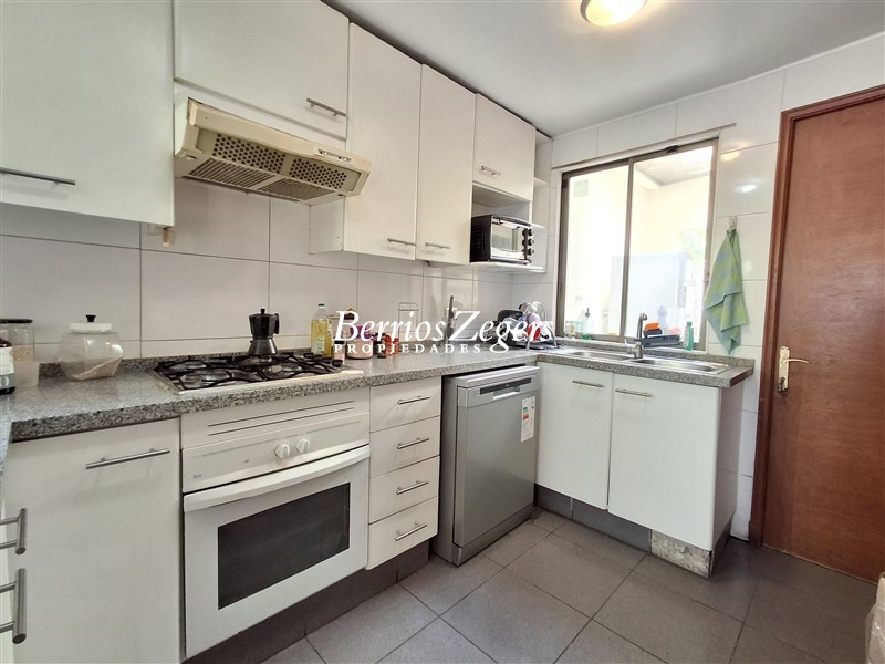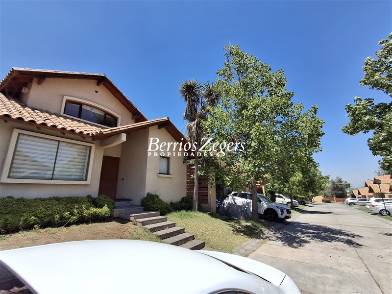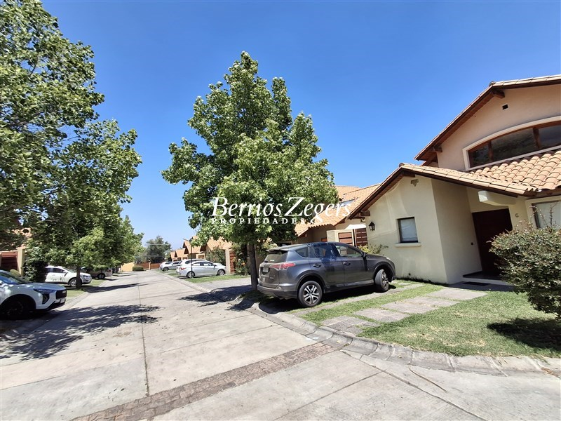 Excelente casa EN CONDOMINIO de 2 pisos, consta en 1er. piso; de amplio living comedor separados, con salida a terraza techada, vista oriente y al jardÃn, dormitorio principal es en suite con W-Closet, mas escritorio o pieza de bebe, baño de visita, amplia cocina con comedor de diario, loggia, pieza y baño de servicio. En el2 do. piso 2 dormitorios, un baño completo y salita de estar, calefacción por losa, estacionamiento para 2 autos, conserjerÃa 24/7, a pasos de supermercados, colegios, locomocion colectiva. OPORTUNIDAD!!