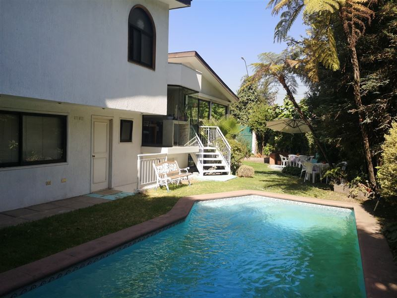 Muy iluminada, amplia, grandes ventanales, lindos jardines exteriores e interiores con arborización, piscina y filtro, control de acceso al Condominio con portón automático. Sector de gran seguridad y plusvalía totalmente residencial.Superficie total 502 m2 con 250 m2 construidos, en tres niveles.Nivel Principal: Hall de acceso, living y comedor separados, sala de estar.Nivel Superior: 3 dormitorios y amplio Escritorio, principal en suite, segundo baño completo.Nivel Inferior: cocina remodelada, con cubiertas de granito, amplia despensa, lavadero, sala de estar y baño con salida a jardín y piscina (podría ser habitación de servicio).En exterior, departamento independiente con estar, baño y dormitorio.Estacionamiento para 5 autos.Excelente ubicación y conectividad, cercana a colegios, supermercados, centros comerciales, locomoción.