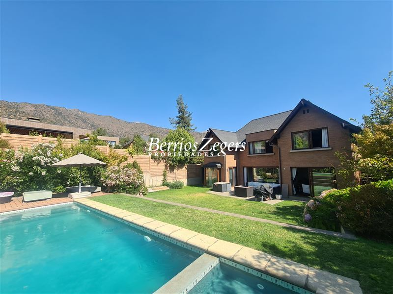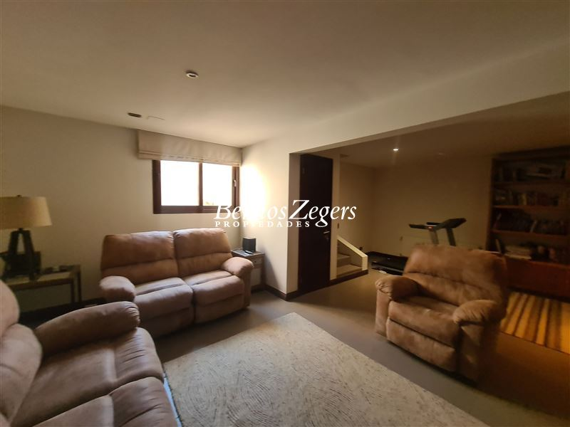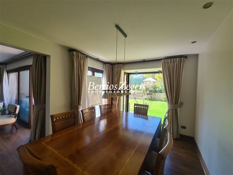 Excelente casa en Condominio. 298/590 m2 aproximados ( entregado por dueño). 4 Dormitorios 5 baños mas servicios ( dormitorio y baño). Hall, baño de visitas, cocina con comedor de diario, logia, pieza y baño de servicio. living-comedor con salida a terraza y jardin con piscina con calefaccion solar y jacuzzi en obra .Escritorio, dormitorio principal en suite con w-closet. Segundo piso sala de estar 2 dormitorios en suite mas otro dormitorio y baño. Subterraneo de 2 ambientes.Toda la casa con ventanales termopanel, riego automatico,Estacionamientos para 3 vehiculos.