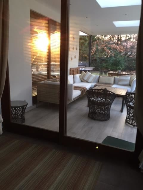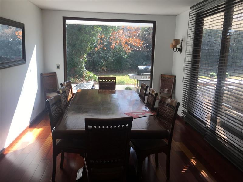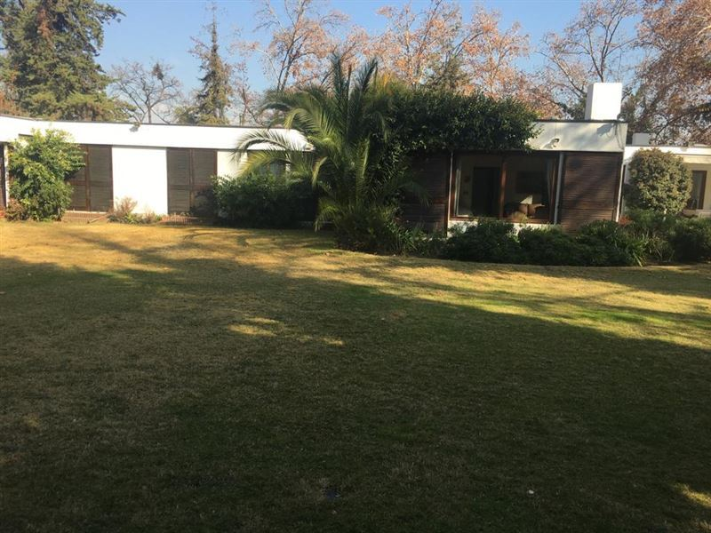 400/2879m2 aproximados. Hermosa casa estilo mediterráneo de 1 piso.Consta de 5 dormitorios y 4 baños mas servicios completos. Amplio hall de entrada con piedra Pelequen , baño de visitas, gran living-comedor separados con hermosa vista a patio y con salida a amplias terrazas, piscina y maravilloso paisaje con grandes arboles.Escritorio o segunda sala de estar (paredes cubiertas con madera) con salida a terraza.Cocina totalmente equipada con comedor de diario con salida a patio de servicio techado con bodega, amplia logia y dormitorio de servicio.Sector dormitorios, separados de áreas comunes, piso de madera. Sala de estar. Dormitorio principal en suite con w-closet. mas 2 dormitorios que comparten un baño, mas 2 dormitorios en suite. Ventanas termopanel, 2 calefont y caldera ( para conectar calefacción), riego automático, alarma, tiene un depto externo de un ambiente y baño.Cuenta con muchos estacionamientos.Excelente ubicacion.