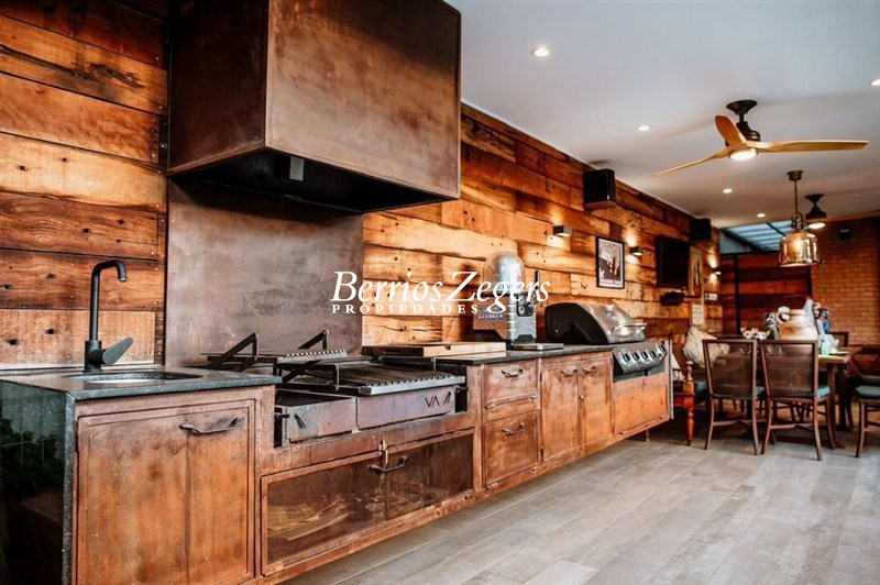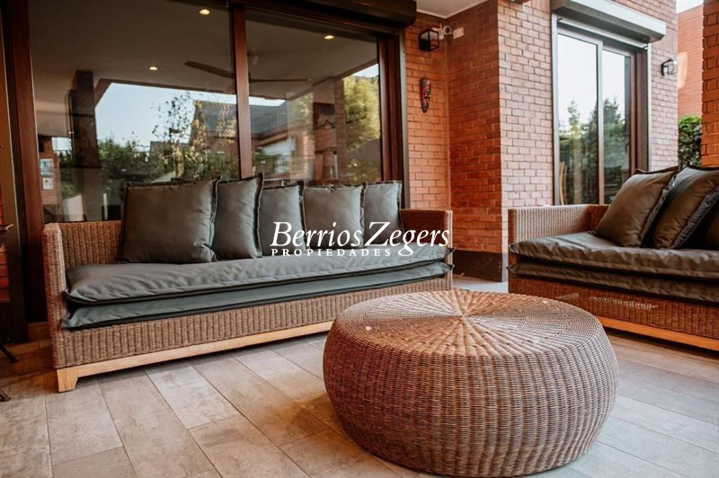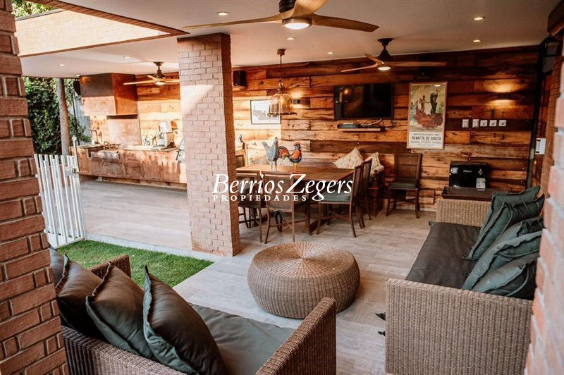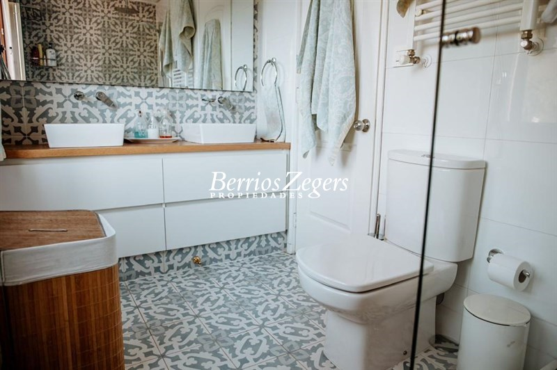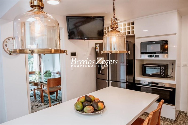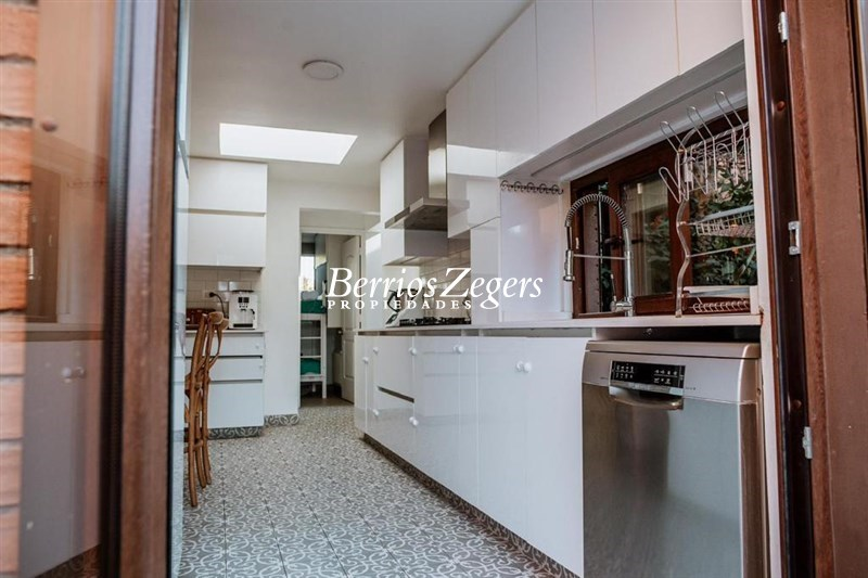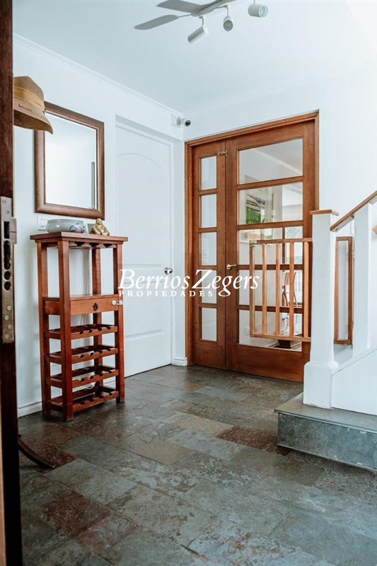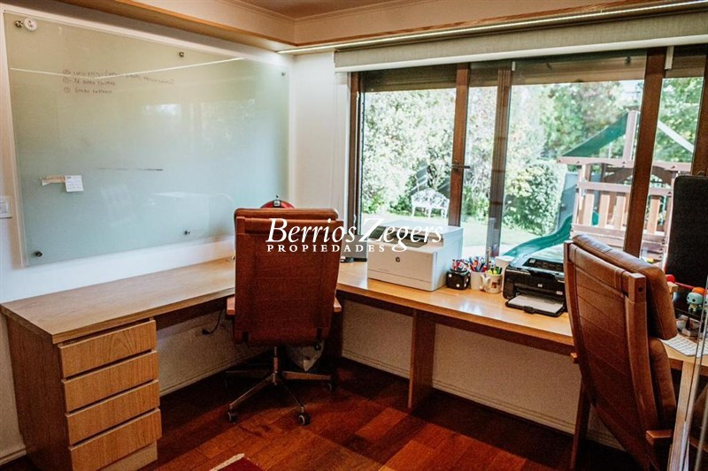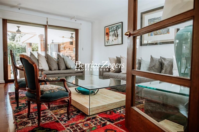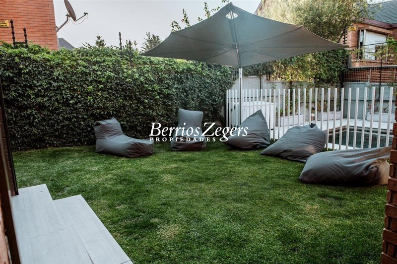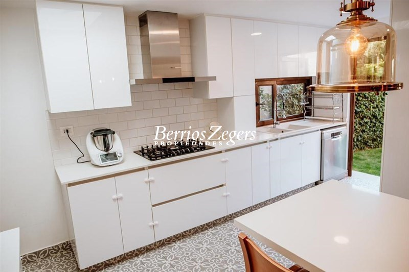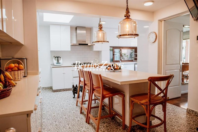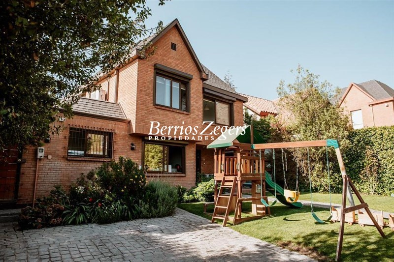 Recién remodelada, preciosa casa estilo inglés, ideal para familias con niños. Frente a Clínica U. Andes y caminable a colegios Scuola Italiana y Cumbres.PRIMER PISO:Hall de acceso, living y comedor separados con salida a terraza y jardín, amplia cocina con mesón con isla, cubiertas en silestone y electrodomésticos empotrados nuevos marca Bosch, baño de visitas, escritorio, pieza y baño de servicio, lavadero y loggia.SEGUNDO PISO:Tres dormitorios de niños que comparten 1 baño con gran tina y closet de guardar.Gran dormitorio principal en suite con walk in closet y dos closets de pared, con salida a terraza independiente con deck de madera y jacuzzi WaterHome.TERCER PISO:Amplia sala de estar, un baño completo y closet de guardar.EXTERIORES:Espectacular quincho techado, construido por "Varvacoa", completamente iluminado, con ventiladores en techo, 3 parrillas en obra (carbón y gas), conexión a parlantes y TV.Piscina con reja, deck de madera y calefacción por calefactor eléctrico y paneles solares para ahorro energético.Jardín formado, completamente iluminado, con riego automático programable, antejardín cuenta con centro de juegos Backyard y amplia bodega lateral.Todas las ventanas con termopanel en PVC, pisos de porcelanato y de madera importada en living comedor y escritorio recién vitrificada, calefacción central por radiadores, caldera calefont nuevos, aire acondicionado Anwo en dormitorio principal, dormitorio de niños y sala de estar.Toda la casa con cortinas y persianas Hunter Douglas, quitasoles Umbrosa en terraza de dormitorio principal y jardín, generador eléctrico de alta capacidad.Estacionamiento para 2 autos grandes, con portón automático de cierre rápido.Excelente seguridad con cámara afuera del condominio, cerco eléctrico, persianas eléctricas, resto de ventanas con rejas de seguridad, puerta principal blindada, cámaras de video dentro y fuera de la casa.
