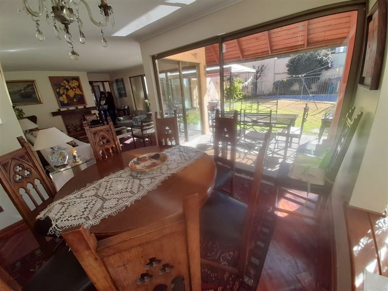 210/498M2 Aproximados casa 2 pisos. 5 Dormitorios, 3 baños mas servicios completos. Hall living-comedor con salida a terraza y patio con piscina. Cocina con comedor de diario con salida a logia. Servicios completos. Salita de estar, dormitorio principal en suite, mas 2 dormitorios y 1 baño. Segundo piso 2 dormitorios y 1 baño, mas salita. Toda la casa con termopanel, riego automático. EXCELENTE UBICACION MUY CERCANA A SUPERMERCADOS, COLEGIOS, UNIVERSIDADES, ETC....
