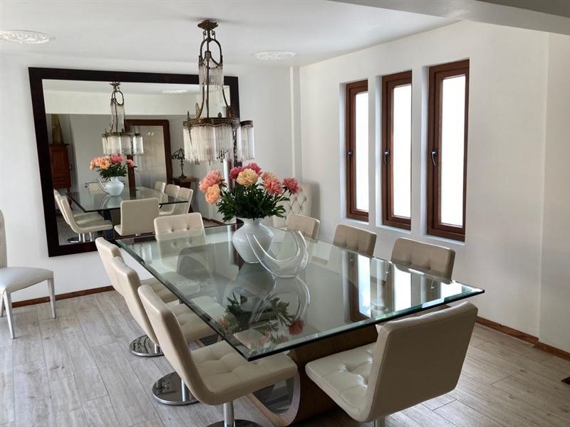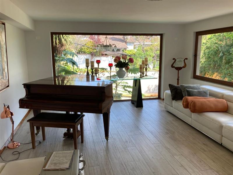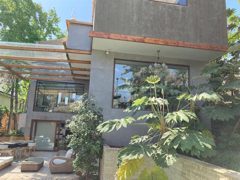 355/459 M2 Aproximados. Excelente casa estilo mediterraneo 4 dormitorios, 6 baños. Nivel 1 ; hall, baño de visitas, living-comedor separados, cocina con comedor de diario, logia. Estacionamientos para 2 autos y bodega. Nivel -1 Gran sala de estar, una master suite, todo con salida al jardin, 2 baños, uno de ellos en el exterior. Piscina, estacionamiento 1 auto. Nivel 2 Gran master suite con sala de estar con salida a 2 balcones y una terraza privada, mas vestidor. Segunda suite amplia. Terraza panoramica con preciosa vista. Excelente ubicacion, la casa cuenta con piscina hecha en marmol, calefaccion por losa radiante,circuito cerrado con camaras de seguridad.Excelente terminaciones.