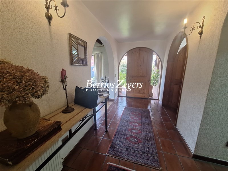 Casa estilo colonial de 2 pisos en San Carlos de Apoquindo, cercana a Colegios, Universidades, Supermercados y Clinicas, conectividad, sector de plazas y zonas para caminar.1er piso: hall de entrada, recibos separados, living con vigas a la vista, cocina amplia amoblada, servicios, lavadero. Baño de visitas, estar con 2 ambientes diferentes con vista y salida al jardin, 3 dormitorios amplios y 2 baños.2do piso: 2 dormitorios, principal en suite de gran tamaño con area de escritorio incorporado y salida a balcon.Caracteristicas: calefaccion central (caldera nueva), pisos ceramica y flotante, piscina y lindo jardin, riego y porton automatico, piscina.AGENDA TU VISITA.