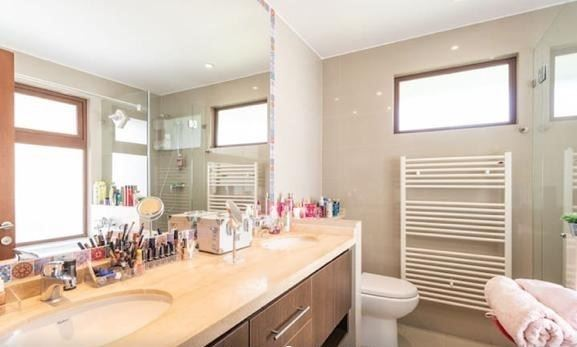 imados y proporcionados por los dueños****300/900 ms App. Espectacular casa amoblada en niveles vista despejada en sector exclusivo y residencial San Carlos Apoquindo a pasos de Colegios Padre Hurtado, Juanita de los Andes a 10 minutos de metro Los Dominicos. 5 dormitorios 7 baños 2 salas de estar. En subsuelo un dormitorio en suite o sala de estar, Primer nivel: Amplio hall de entrada living comedor separados en niveles con salida a cómoda terraza techada, baño de visitas gran dormitorio principal en suite con walk in closet, salita y terraza. cocina equipada comedor de diario, loggia., Segundo nivel, 3 dormitorios 2 baños y salita.Jardín diseñado por paisajista, piscina. ventanas termopanel, calefacción por radiadores, cerco eléctrico, seguridad 24/7. Gran terraza techada quincho en obra, piscina, baño sector piscina. Portón eléctrico, estacionamientos descubiertos para 4 autos. **** No se aceptan Mascotas **** Disponibilidad entrega 1 mes despues de confirmado el arriendo*** Los metros son aprox