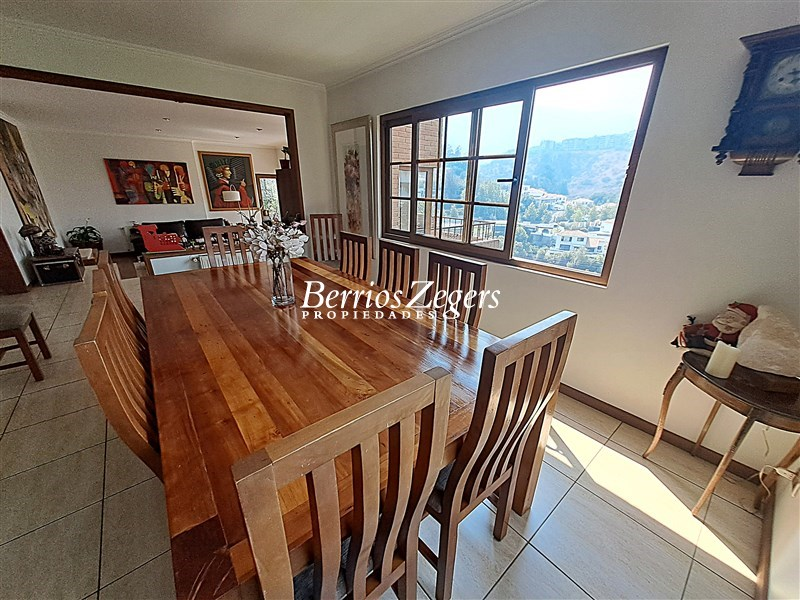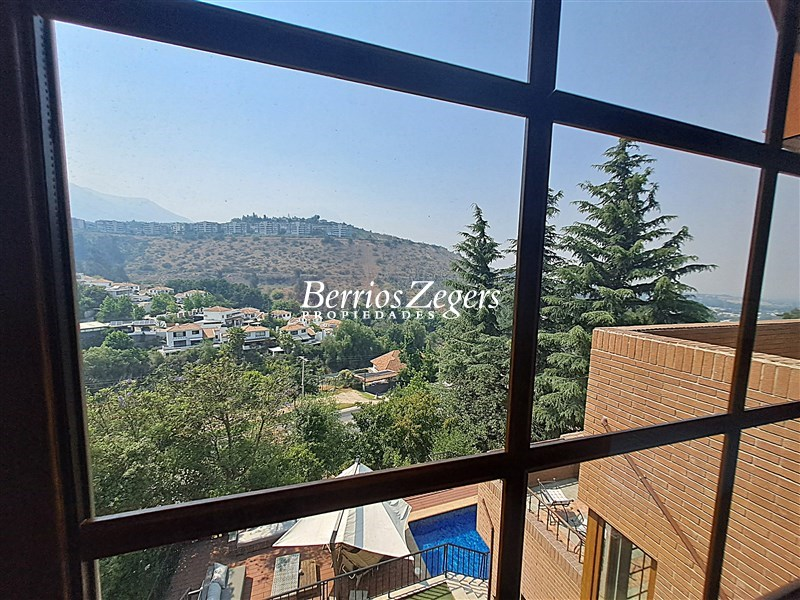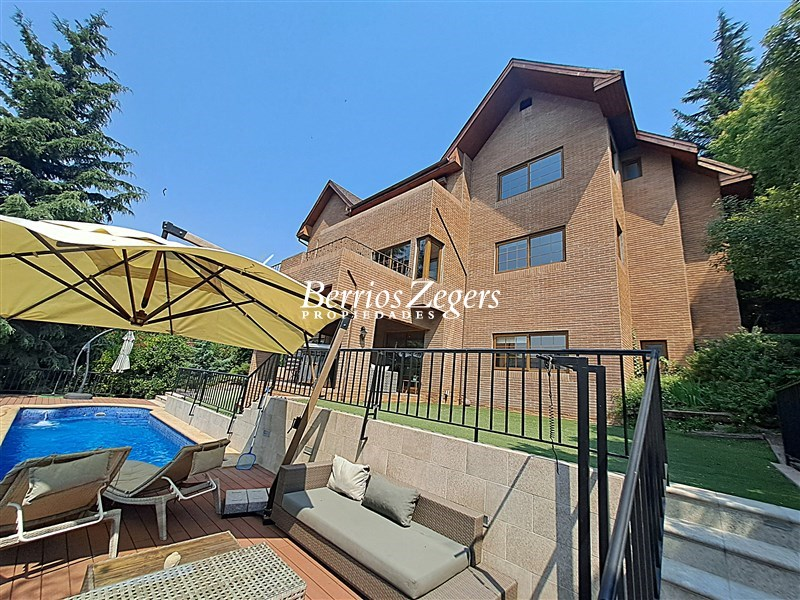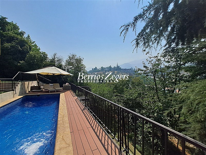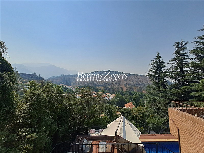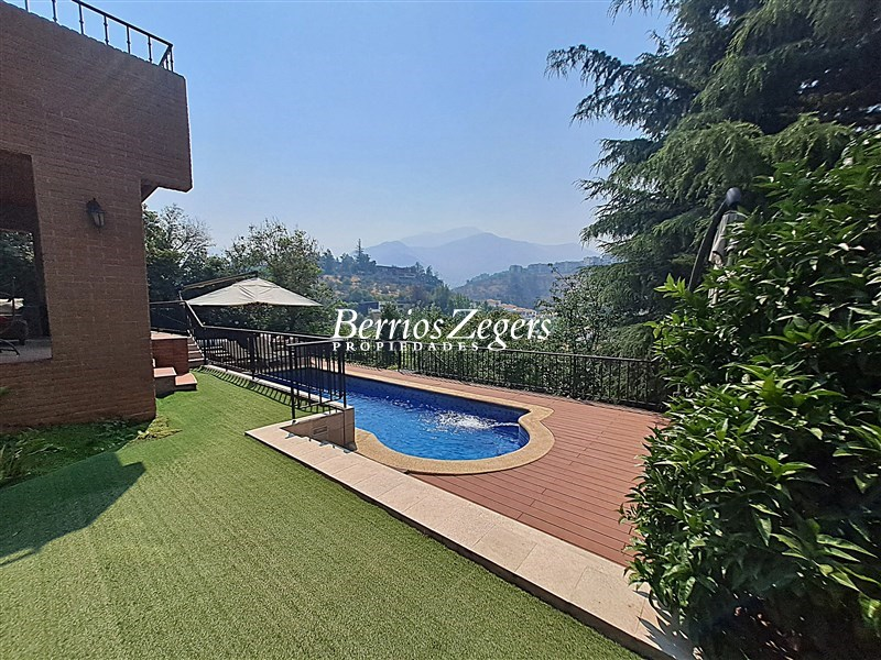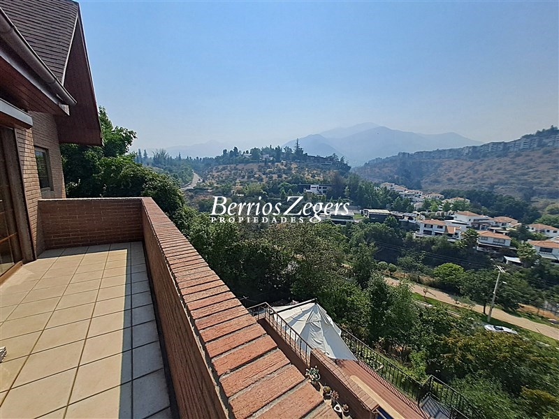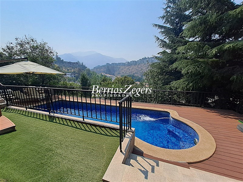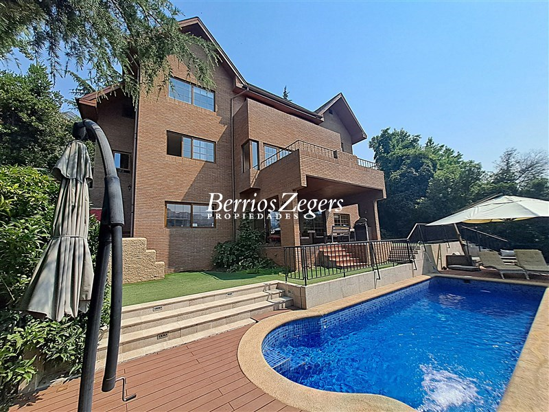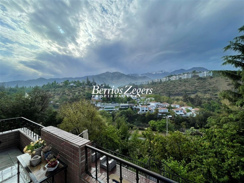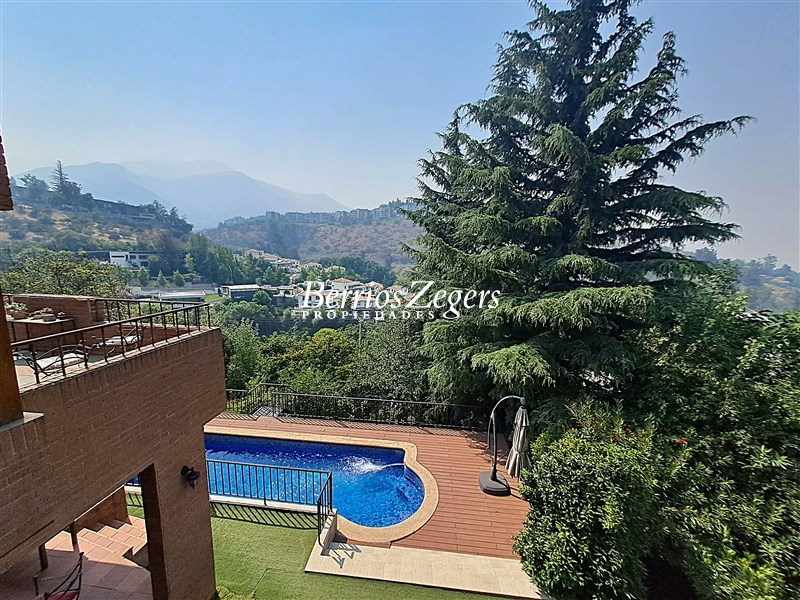 Espectacular vista panoramica a la Cordillera , maravillosa casa estilo Inglés, distribuida en 3 niveles, ubicada en el Mirador de Los Dominicos, cercana al Colegio Wenlock. Guardia a metros de la propiedad.Primer Piso: Hall de acceso de doble altura, amplios recibos (living con salida a terraza) , cocina amoblada y equipada con comedor de diario, muebles de madera y cubiertas de granito, lavadero,servicios independiente, baño de visitas, dos dormitorios amplios que comparten un baño,Segundo Piso: Dormitorio principal en suite, con maravillosa vista y salida a terraza, 2 walking closet, y escritorio o pieza de bebé, otros dos dormitorios que comparten un baño.Nivel Inferior: Sala de estar,con una cava y sala de cine,un dormitorio, un baño completo, y gran terraza que da al jardin,bodega subterranea.EQUIPAMIENTO:Todas las ventanas termopanel, calefacción central por radiadores con caldera nueva, pisos madera de ingeniería, flotante, cerámica y porcelanato, alarma, iluminacion full LED, 4 estacionamientos techados, piscina, jardín formado, variedad de árboles frutales, sistema de riego por goteo.Caseta con guardia de seguridad al frente.Metraje aproximado entregado por los dueños.
