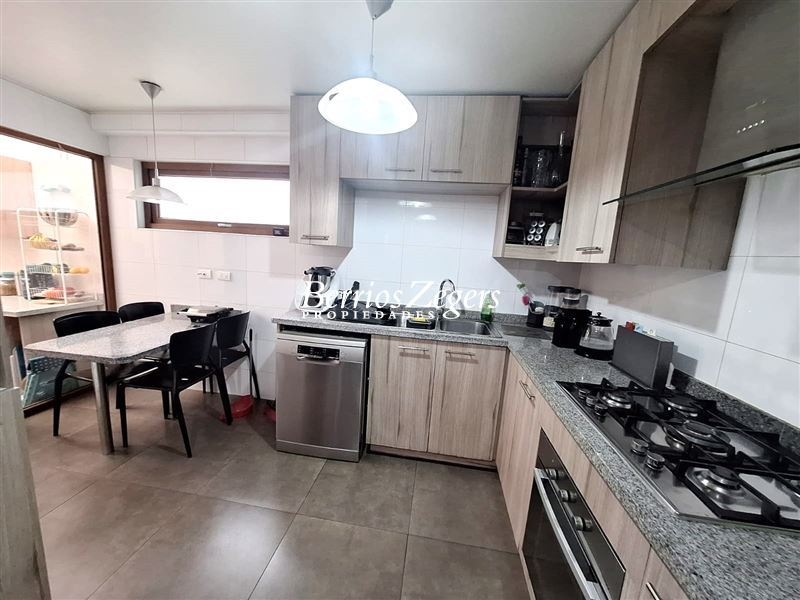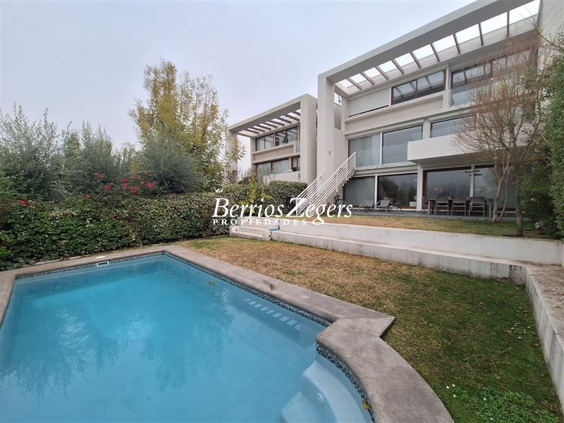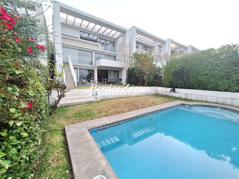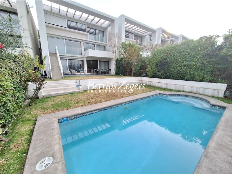 Casa mediterránea en condominio, Mirador de los Dominicos, seguridad las 24 hrs, vista panorámica espectacular, seguridad, buenos espacios y luminosa, orientación nororiente. Sector residencial.Casa moderna emplazada en 3 niveles, hall de entrada, recibos con salida a terraza techada, vista a la Cordillera, cocina amoblada y equipada con comedor de diario, logia y servicios. Baño de visitas, 4 dormitorios, 2 en suite, principal en suite con salida a terraza, sala de estar con salida a terraza techada, vista un hermoso jardín.Características generales: piscina con paneles solares, riego automático, ventanas termopanel PVC, pisos flotante, porcelanato y piedra pizarra, calefacción por radiador y losa, persianas metálicas electricas,4 estacionamientos,1 bodegaEl condominio esta a pocas cuadras de servicios y locomoción.AGENDA TU VISITA.
