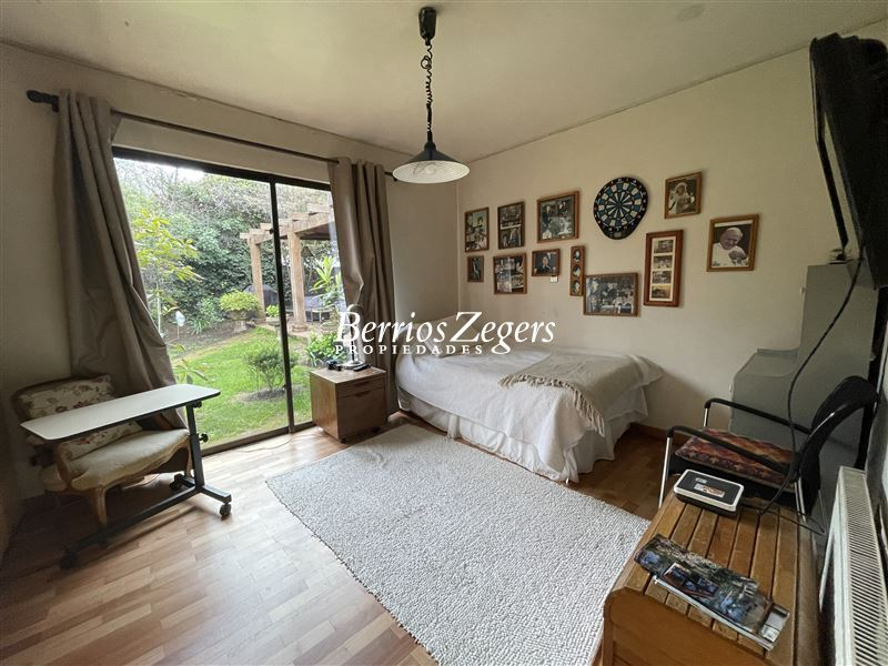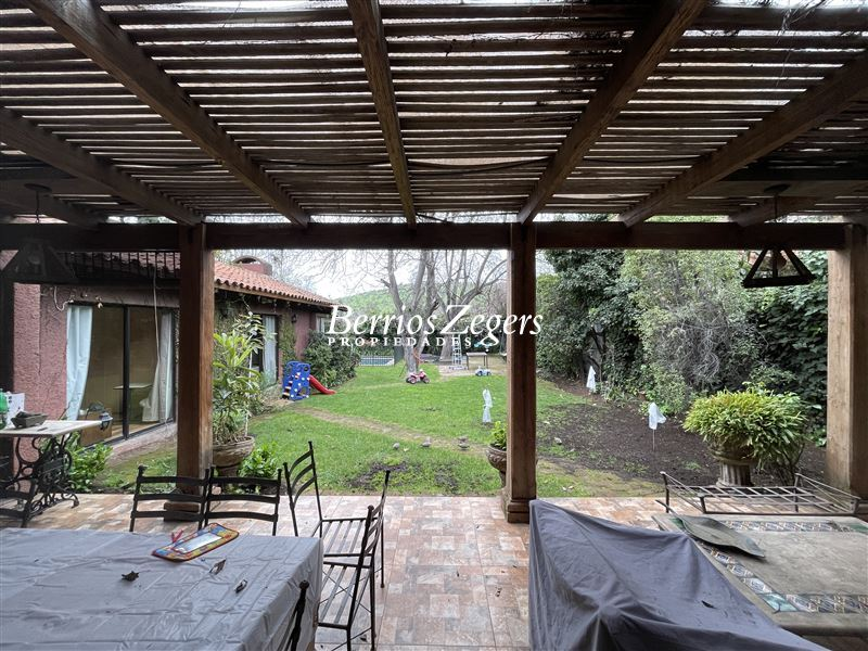 240/1.128 m2 aprox. Casa interior, estilo campestre, hall piso batuco, recibos separados piso madera, con salida a terraza, sala estar, 5 dormitorios (ppal. suite) 3 baños. Cocina con comedor diario, servicios, jardín con piscina, estacionamiento para varios autos. Buen terreno y seguridad.