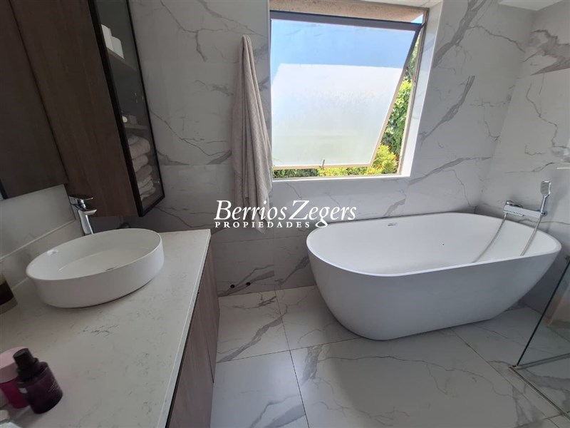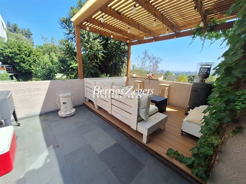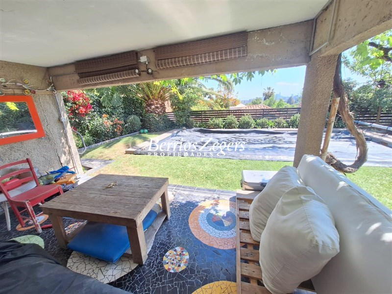 Casa estilo mediterraneo en desnivel con una espectacular vista urbana a la ciudad,sector oriente, remodelada, buenos espacios y mucha luz en ellos, sector residencial, buena conectividad.1er nivel: Hall de entrada doble altura, cocina amoblada y equipada con isla, lavadero techado, comedor, living en desnivel con salida a terraza y vista al jardin, dormitorio principal en suite con w.closet, otro dormitorio y baño.2do nivel: 3 dormitorios, 1 baño, sala de estar con maravillosa vista a Santiago, terraza como mirador.Caracteristicas Generales: pisos de madera, porcelanato y piedra pizarra, ventanas termopanel, terrazas techadas, bodega, 1 habitacion exterior doble con baño (usada como GYM, pero puede ser servicios,lindo jardin, riego y porton automatico, piscina de buen tamaño calefaccionada, calefaccion por aire acondicionado en los dormitorios, 2 estacionamientos.AGENDA TU VISITA .