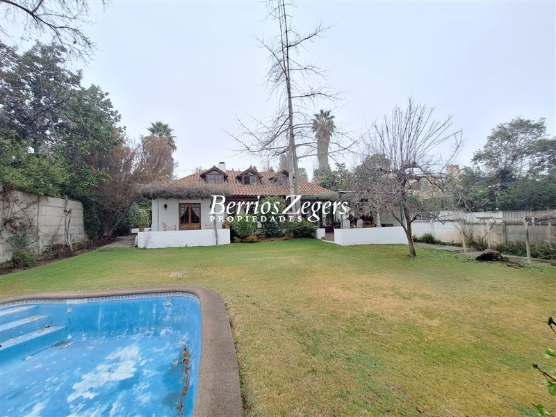 Casa estilo colonial con un gran terreno lo que significa que tienes una vista hermosa al jardin, cuenta con 4 dormitorios con salida a terraza, 3 baños, sala de estar de unos 42 mtrs app en el 2do piso, cocina, servicios, calefaccion central por radiador , piscina, orientacion norte, 6 estacionamientos (3 techados), jardin muy amplio, porton y riego automatico, arboles frutales, amplias terrazade unos 70 mtrs app.210 mtrs, y 1340 mtrs de terreno app, propiedad ideal para remodelar para disfrutar el lindo jardin, riego por canal.Ubicada en Los Dominicos Antiguos, excelente conectividad.AGENDA TU VISITA EXCELENTE OPORTUNIDAD POR EL TERRENO