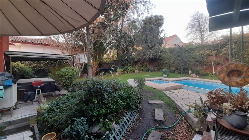 169m2/476m2 app. Casa estilo colonial en San Carlos de Apoquindo, calle tranquila con una hermosa plaza cercana, ColegioSan Nicolas de Myra., Cordillera, Cumbres, Hall de entrada, recibos separados con salida a terraza, 4 dormitorios (principal en suite en 1er piso), escritorio (o quinto dormitorio 1er piso), 4 baños, cocina , lavadero, ventanas termopanel, lindo y amplio jardín piscina, estacionamiento para 3 autos, portón y riego automático.