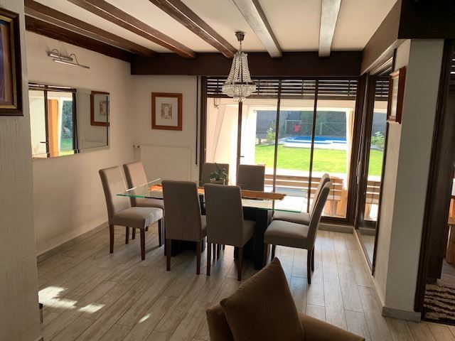 Linda casa colonial oriente con mucha luz, hall amplio recibos , 3 dormitorios principal en suite, escritorio o cuarto dormitorio, Quincho integrado con sala de estar, baño de visita, subterráneo, entretecho habilitado, cocina amplia, loggia y pieza de servicio, piscina lindo jardín, calefacción, aire acondicionado.La casa esta totalmente refaccionada, ventanales termopanel.