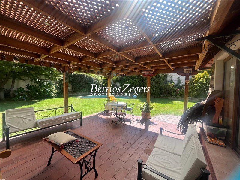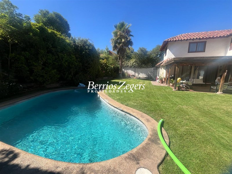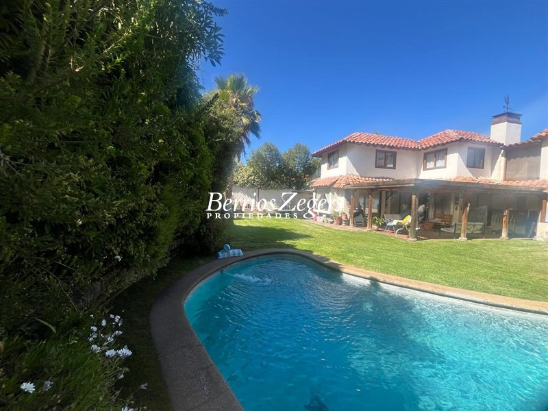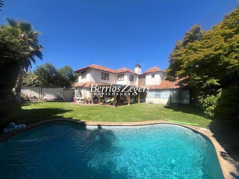 Excelente casa 2 pisos 312/805m2 aproximados (entregado por dueño). 4 Dormitorios, 4 baños, servicios completos (dormitorio y baño), escritorio o 5 dormitorio, sala de estar. Primer piso ; hall de distribución, living comedor separados con salida a terraza y amplio jardín. Piscina. Cocina con comedor de diario con salida a patio de servicio y depto. de servicio. Baño de visitas. Escritorio o 5 dormitorio. Dormitorio principal en suite con w-closet. Segundo piso ; amplia sala de estar, 1 dormitorio en suite mas 2 dormitorios y 1 baño. Toda la casa con ventanas termo panel, riego automático, estacionamientos 3 autos y en el exterior para 4 autos. Excelente ubicación.