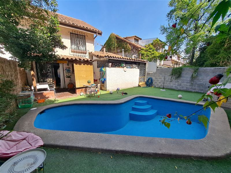 Casa de 3 pisos pareada con muy buena conectividad y sector, cercana a avda. Las Condes, acceso autopista, supermercado, colegios, iglesias y plazas.1er piso: Hall de entrada, recibos separados, cocina amoblada, servicios2do piso: 3 dormitorios( principal en suite, w.closet y con salida a balcón), 2 baños3er piso: sala de estar y un escritorio o 4to dormitorio.Características: terraza techada, piscina, orientación norte, baños con ducha termostática, calefónt eléctrico, cocina con triturador de desechos, nuevo sistema electricidad Enel, disminuye costo electricidad, portón eléctrico, caseta de vigilancia a metros.SOLICITA TU VISITA