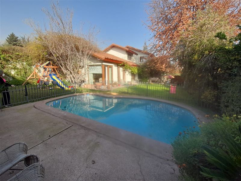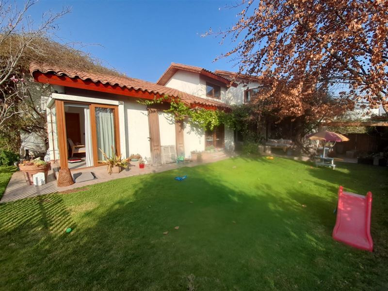 EN CONDOMINIO! Casa ubicada en excelente sector de Los Dominicos, conectividad y buena orientación, seguridad las 24 hrs.1er Piso: Hall de entrada, recibos separados ( living con salida a terraza), baño de visitas, 2 dormitorios en suite (principal con Walk in Closet), 2 baños, cocina amoblada y equipada full con comedor de diario, lavadero y servicios.2do Piso: 2 Dormitorios , 2 Baños , sala de estar. Toda la casa con Ventanas Termopanel y Calefacción Central por Losa (sectorizada), Sistema Domótica.Exterior e interior : lavadero y terraza techada, ventanas termopanel PVC, calefacción por losa, piscina con protección, lindo jardín con juegos de niños, riego automático, 5 estacionamientos, pisos de porcelanato y mármol, baños y cocina remodelada full, 2do piso con losa para ampliar ( 30 mtrs app)Excelente Ubicación de Los Dominicos. G.Comun: $320.000SOLICITA TU VISITA .