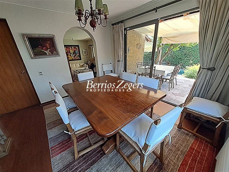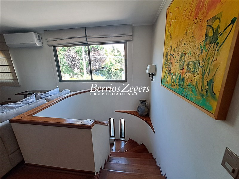 Casa estilo colonial en EXCLUISIVIDAD, sector residencial en San Carlos de Apoquindo, calle tranquila, gran conectividad con todo el sector Colegios, Universidades, Supermercados, Paseo Los Dominicos. Amplios y luminosos espacios, propiedad impecable, se puede habitar de inmediato.Primer Piso: Hall de acceso, living y comedor en desnivel con salida a terraza y linda vista al jardín, cocina amoblada y equipada (cubierta de granito), espacio para comedor de diario, servicios, lavadero techado de gran tamaño, baño de visita, dormitorio principal en suite con salida a terraza y vista al jardín.Segundo Piso: Sala de estar, 2 amplios dormitorios, 1 baño completo.Características Generales:Calefacción central por radiadores, ventanas termopanel en aluminio, aire acondicionado frío/calor en sala de estar y dormitorio principal, pisos flotante y piedra, jardín formado con riego automático, piscina, estacionamiento para dos autos.AGENDA TU VISITA!!!