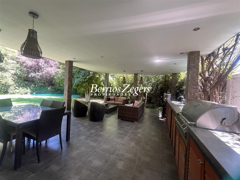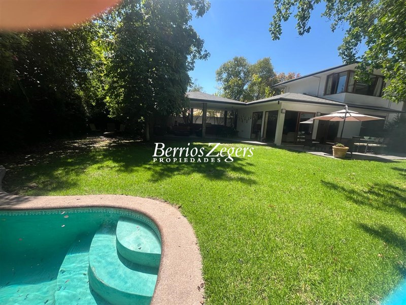 Excelente y amplia casa de 2 pisos 374/1150 m2 aproximados (entregado por dueño). 5 Dormitorios, 5 baños, escritorio, 2 salas de estar, servicios completo (dormitorio y baño). Hall de acceso, baño de visitas, living-comedor separados con salida a terraza y jardín con piscina ( con paneles solares), amplio y lindo quincho. Cocina con comedor de diario, sector servicios, logia, bodegas.2 Dormitorios, 2 baños ,w-closet, salita. Segundo piso; amplio dormitorio principal en suite con w-closet, sala de estar mas 2 dormitorios 1 baño, escritorio o 6 dormitorio. Todo termo panel, calefacción central.. Estacionamientos, riego y portón automático. Excelente ubicación.