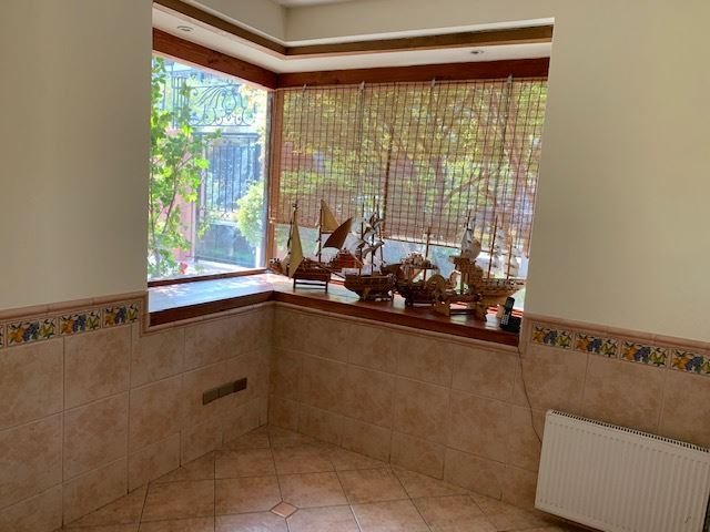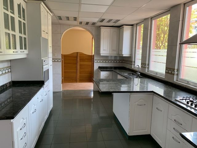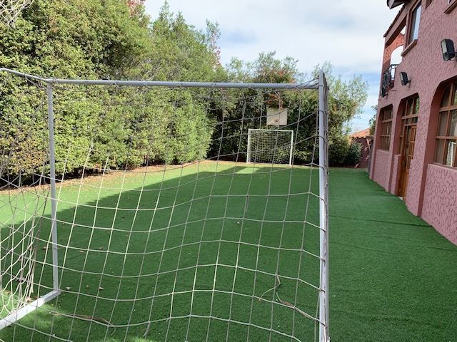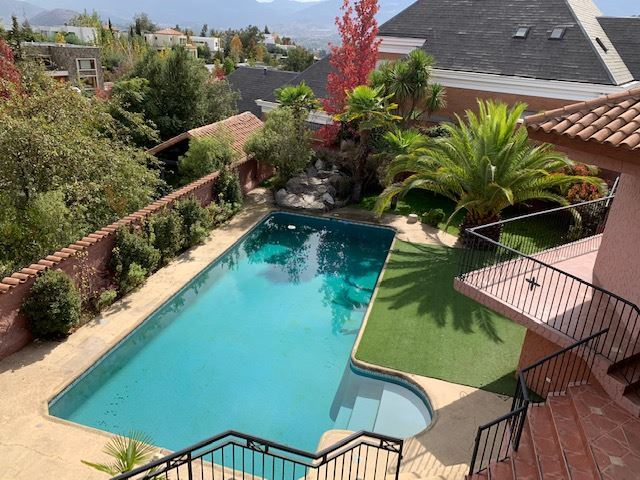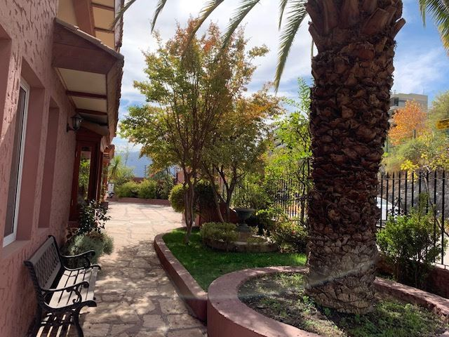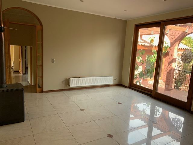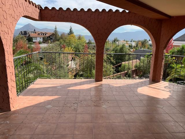 Casa Colonial, Living y comedor separados, terraza con vista a todo Santiago, 6 dormitorios, principal en suite, escritorio, 2 salas de estar, terraza con vista a la cordillera, subterráneo amplio puede ser usada como sala de juego o de cine, taller y dependencia amplia con un estar pequeño, cocina grande, comedor de diario, cancha de baby futbol, jardín con piscina, pasto sintético, calefacción mixta por loza y radiadores, estacionamientos