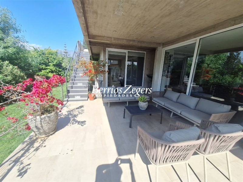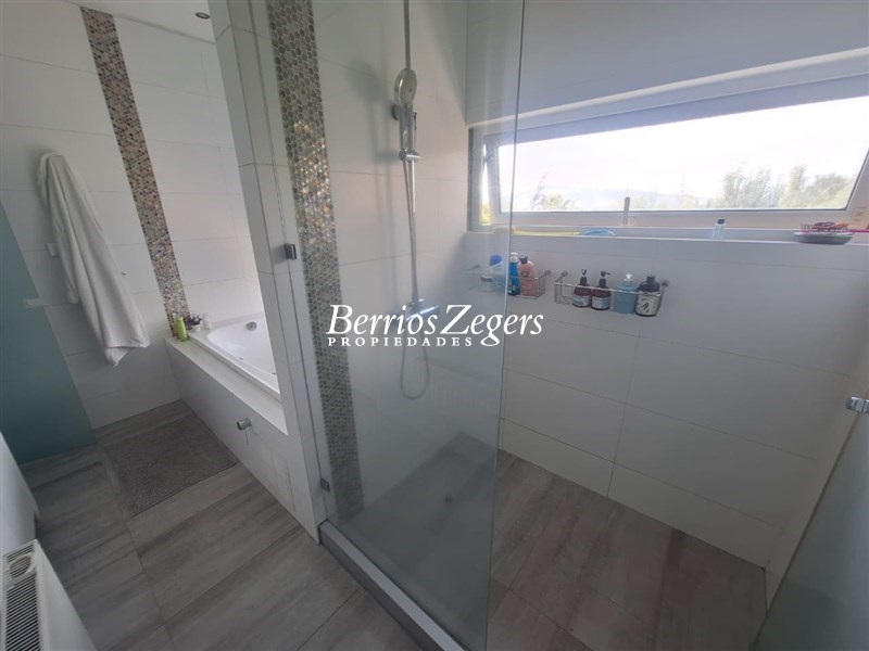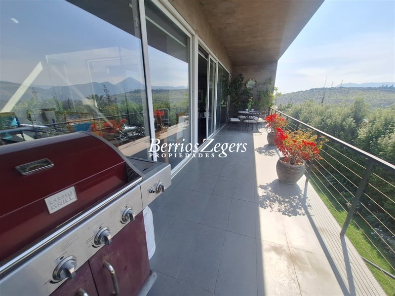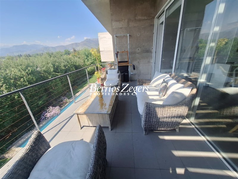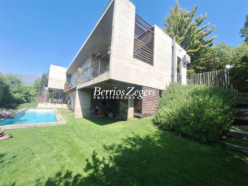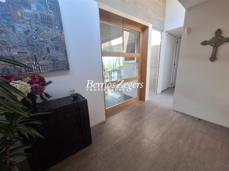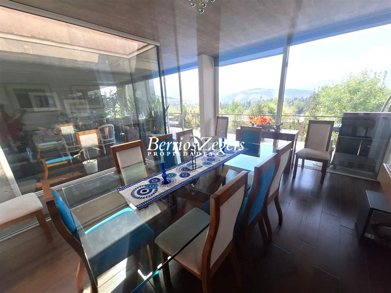 Casa estilo mediterranea full, Mirador de los Dominicos,moderna, luminosa, hormigon a l vista, buenos espacios, nor oriente, maravillosa vista a la Cordillera, mirador vista panoramica1er Nivel: hall de entrada con vista de inmediato a la Cordillera, recibos separados con salida a terraza, baño de visitas, cocina con isla como comedor de diario, amplio lavadero.2do Nivel: 2 dormitorios, principal en suite de gran tamaño con salida a terraza y walk-in-closet, 2 do dormitorio en suite.Nivel Inferior: sala de estar con salida a terraza, amplio y moderno escritorio amplio con salida independiente, 2 dormitorios, 2 baños, y tercer dormitorio en suite.Caracteristicas Generales: piscina calefaccionada, pisos de madera y porcelanato, cerco electrico, ventanas termopanel, calefaccion por radiadores, camaras de seguridad, alarma, riego y porton automatico, 3 estacionamientos y caseta de seguridad a pocos metros.AGENDA TU VISITA si buscas modernidad y vista espectacular.