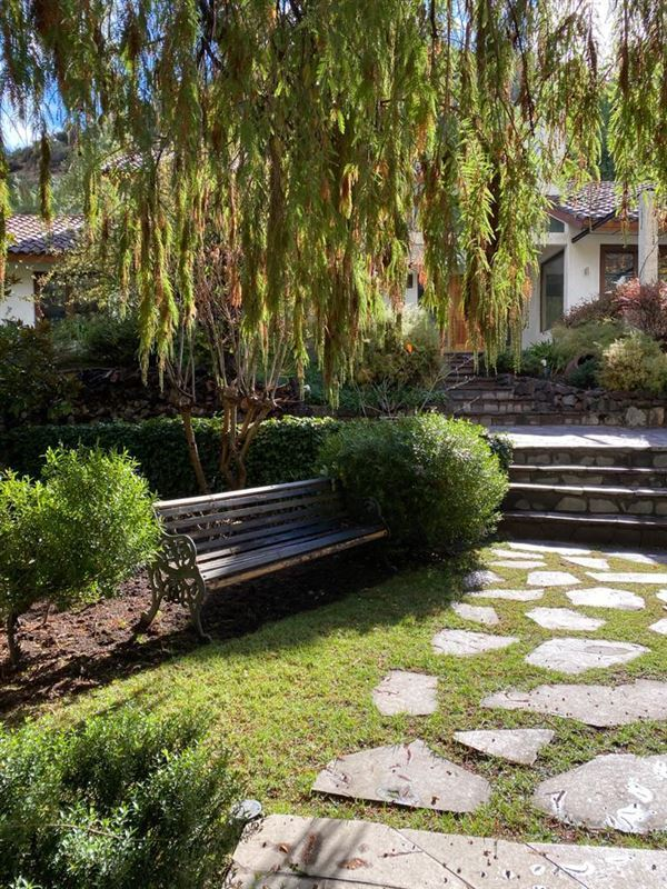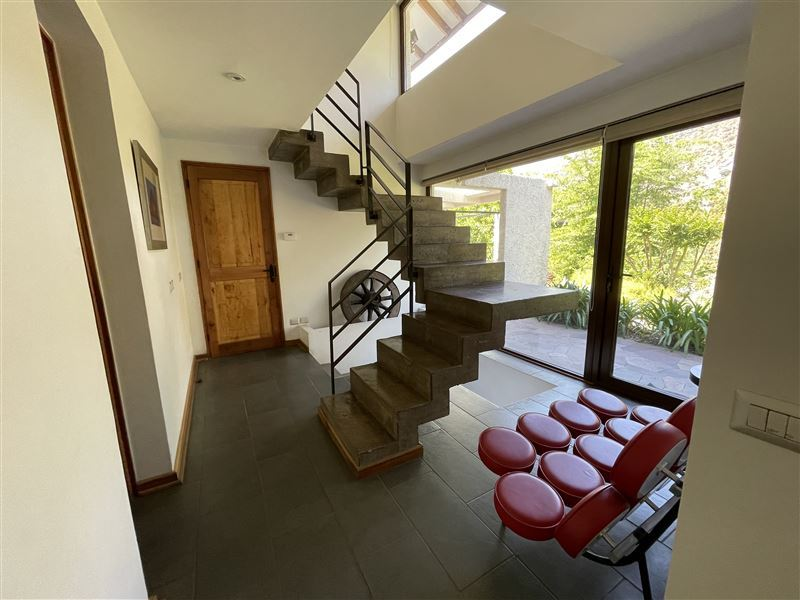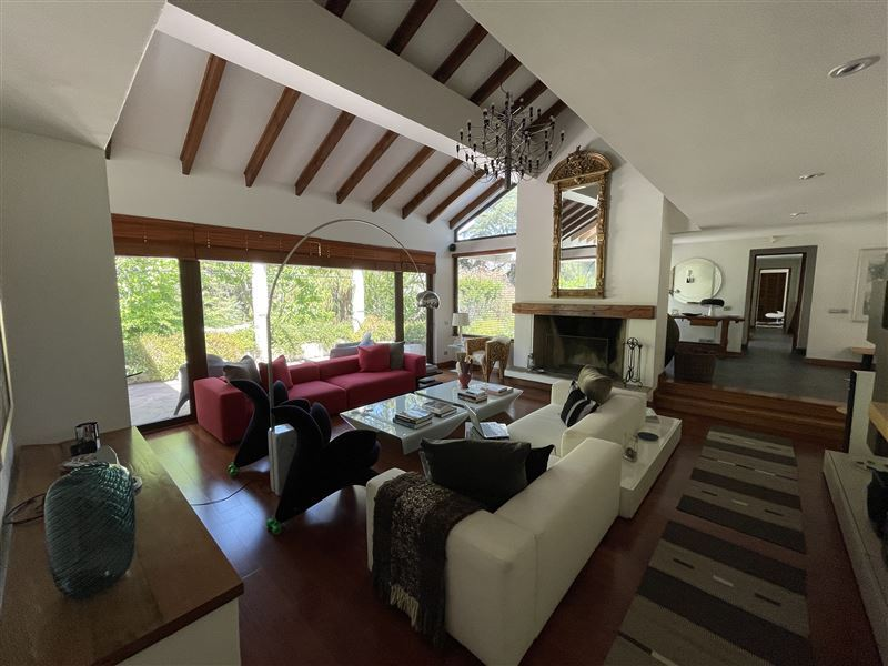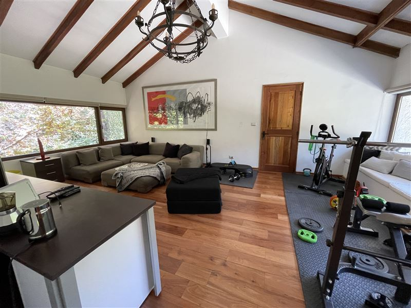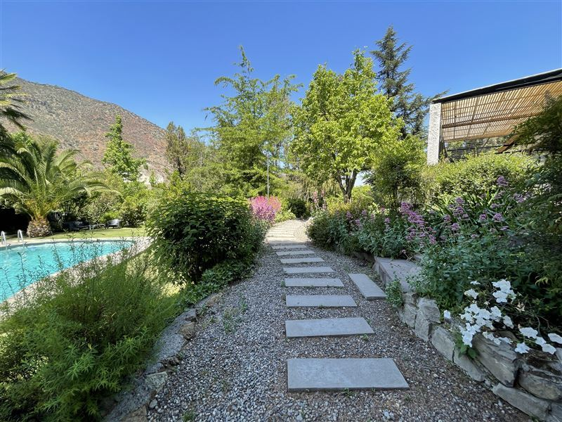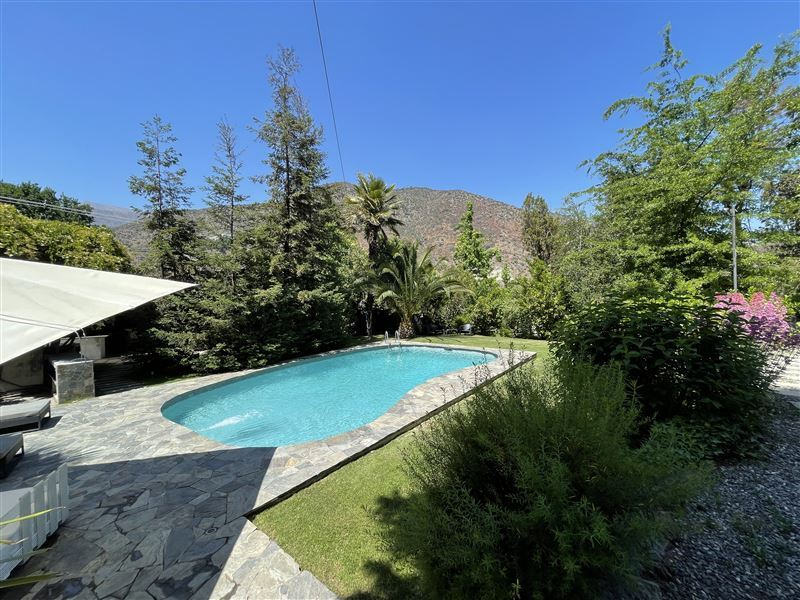 450/ 7.500 Mt2 aprox. Casa Colonial recientemente remodelada, moderna, luminosa, amplio hall entrada, recibos separados piso madera. Cocina con isla, comedor diario con vista a jardines. 6 dormitorios 5 baños (dormitorio ppal. amplia suite) gran estar, gimnasio, Cava. Sala de música/ oficina. Dependencias completas. Muchas terrazas , Ventanales termopanel PVC, cortinas de madera eléctricas en living y comedor, resto de la casa con roller, calefaccion central.Quincho independiente con cocina y baño. Lavadero interior y otro exterior techado. Camarín exterior con baño completo para jardinero o mozo, bodega de herramientas.2 entradas de auto. Estacionamiento varios autos.Parte del terreno en cerro con huerta, caminos y árboles frutales.