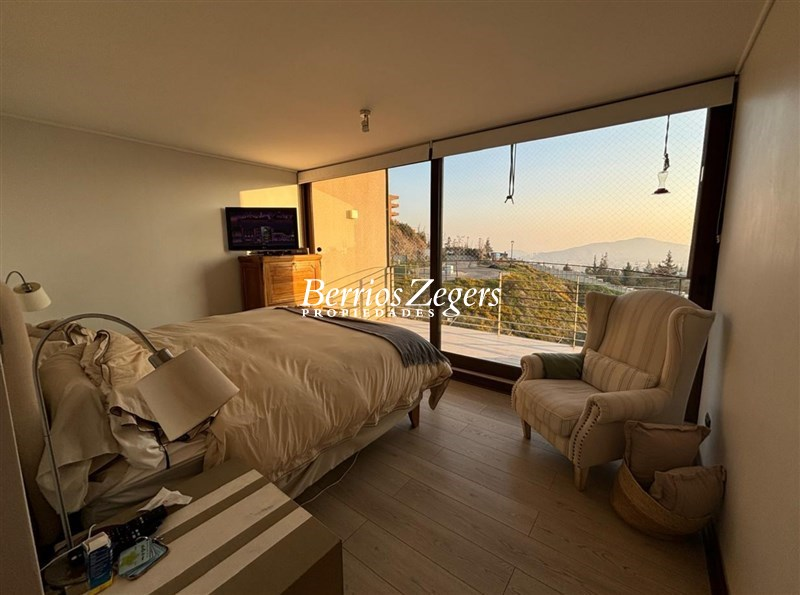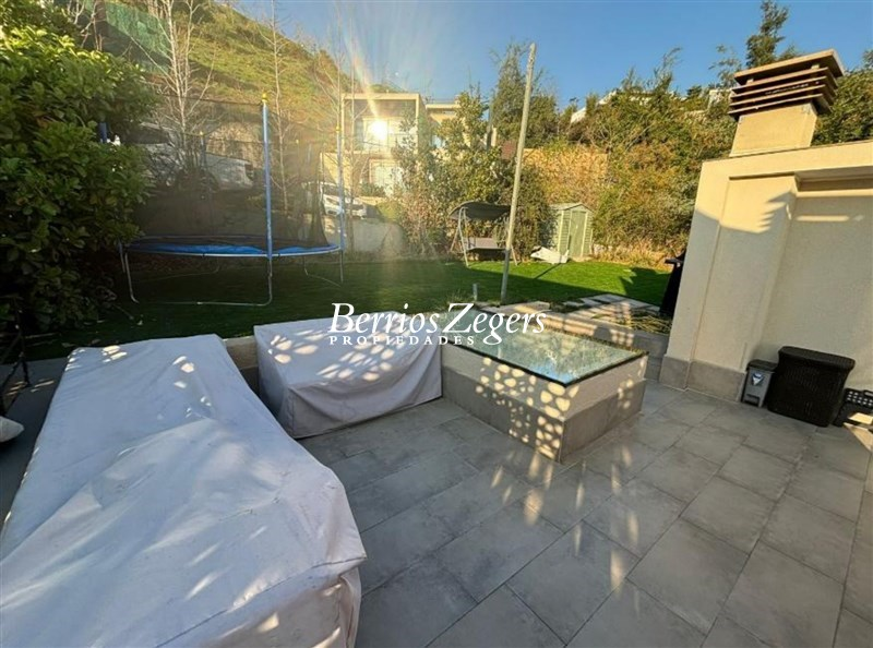 Excelente casa mediterránea tipo Townhouse en condominio, no perimetral. Preciosa y despejada vista al valle, en tranquilo sector residencial de la dehesa. En perfecto estado de mantención, amplios espacios y mucha luz natural. Muy buena conectividad. 5 minutos caminando al preescolar del Colegio Mayflower y 8 minutos a la entrada principal. 4 minutos en auto a Colegio Huinganal y 8 minutos a Colegio Monte Tabor.Varias plazas en el sector, centros comerciales, clínicas y acceso a autopista.Primer piso (acceso): Hall de acceso. Baño de visitas. Living y comedor separados (grandes), con salida a terraza y jardín, y preciosa vista al valle. Amplia cocina con comedor de diario y logia techada. Segundo piso: Cómoda y luminosa sala de estar. Dormitorio principal en suite, baño con ventana, walk-in-closet y terraza con increíble vista al valle. 2 dormitorios de buen tamaño que comparten un baño completo con ventana.Tercer Piso: (Exterior): Excelente terraza con gran vista despejada al valle. Amplio segundo jardín con riego automático. Es un gran espacio para reuniones sociales. Bodega.Subterráneo: Gran sala de estar, con salida a jardín. Baño completo. Dormitorio en suite con baño completo (puede ser pieza y baño de servicio).Cortinas Roller y luminaria general quedan en la casa; Ventanales termopanel.