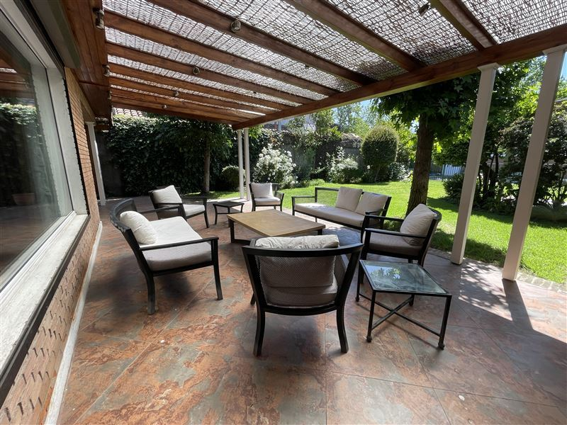 Estupenda casa sector Santiago College. Excelente conectividad, cercana a centro comerciales, colegiosEmplazada en terreno de 870m2 y 350 construidos, 2 pisos.Primer Piso:- Amplio hall de acceso, living comedor separados con salida a terraza.- baño de visita.- Dormitorio principal en suite con walk in closet.- Dormitorio,(opcional vestidor) escritorio- Amplia cocina con comedor de diario.- Lavadero, sala de planchado.- Dos dormitorios de servicio, un bañoSegundo Piso:- Dos salas de estar, cinco dormitorios, dos baños completos.Exterior:- Hermoso jardín formado, terrazas con quincho en obra.- Piscina, área de servicio, bodega.- Estacionamiento techado para 4 o 5 autos.Equipamiento:- termopanel en el primer piso, central de aspirado, calefacción por loza radiante, cerco eléctrico, cortinas de seguridad.