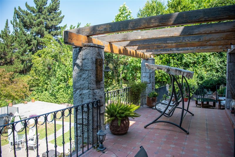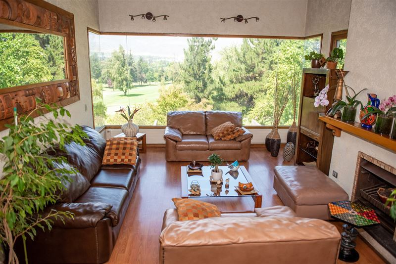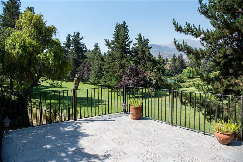 314,98/760 mts linda casa estilo chileno casa borde cancha de golf imponente vista oriente hall de entada living y comedor separados en desnive 7 dormitorios 2 en suite cocina amoblada y equipada con cubierta de granitocon comedor de diario dependencias completas logiabaño de visaitas sala de estar sala de multiuso piscina gran bodega con SALIDA A CANCHA DE GOLF.