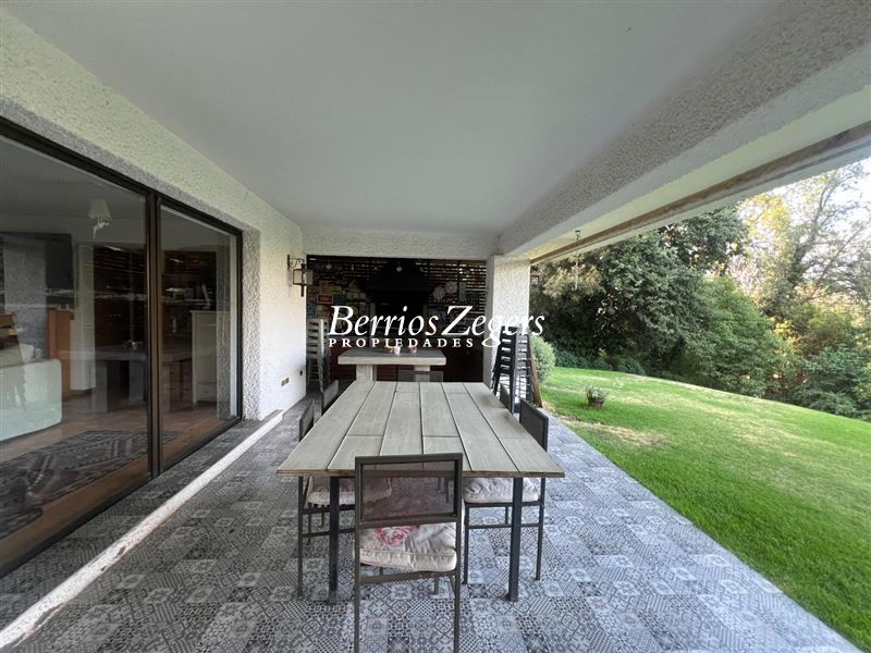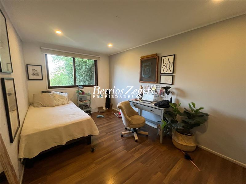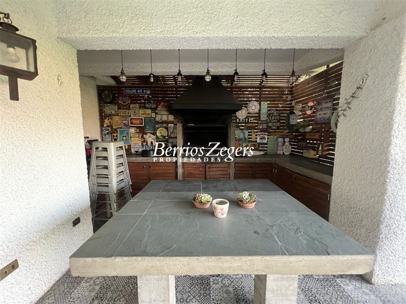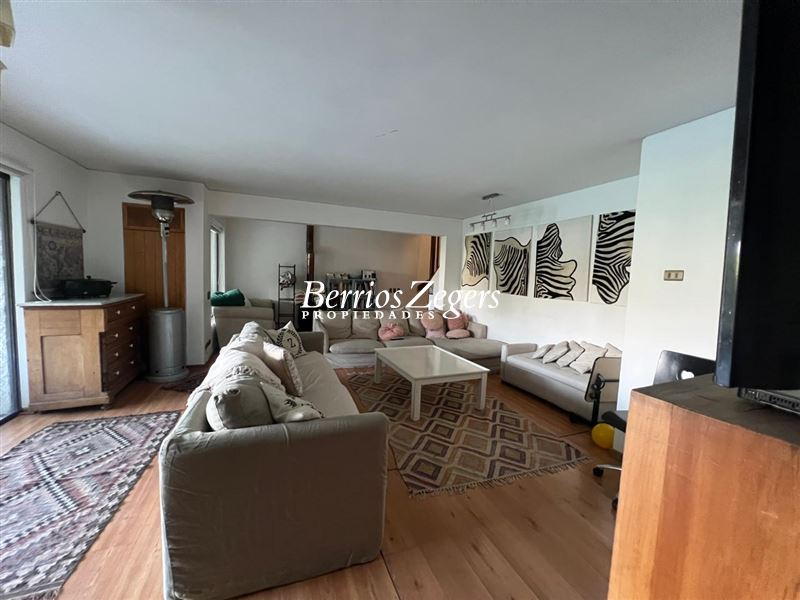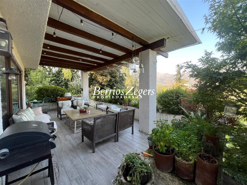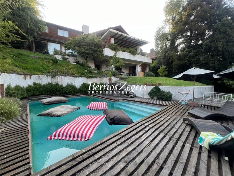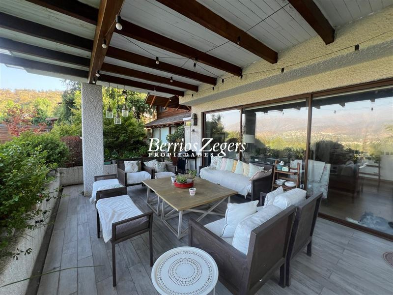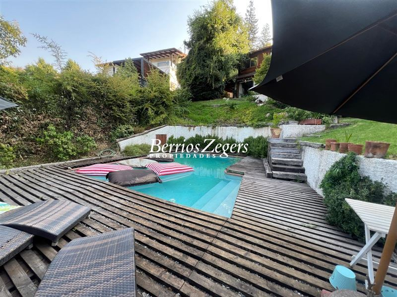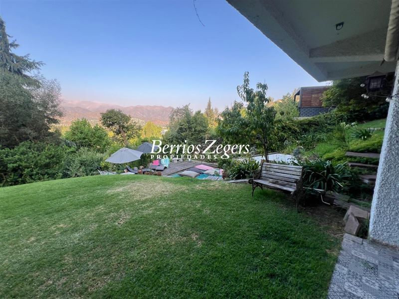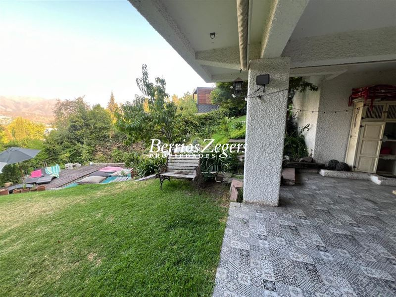 381/970 m2 aprox. Preciosa casa con vista maravillosa, en condominio exclusivo.1° piso: hall de entrada amplio con hermosa puerta de madera; recibos grandes separados, muy luminosos , con hermosa vista a la cordillera y salida a terraza.pisos de madera; ventanales termopanel; piso terraza porcelanato.Linda cocina remodelada con comedor de diario; patio de servicio y dependencias completas de servicio.Gran dormitorio principal en suite con walk-in-closet y lindo baño; y otro dormitorio y baño.Nivel -1: Sala de estar grande con salida a otra terraza con jardines, hermoso quincho en obra y linda piscina con deck.pequeño escritorio y 1 baño completo.2° Piso: 3 dormitorios grandes con salida a terraza; baños y una salita.La casa cuenta con muchos closets, bodegas y despensas.Todos los baños son con ventilación natural; calefacción central a petróleo.Estacionamiento techado para 2-3 autos y varios autos sin techar.