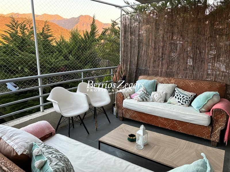 Casa mediterránea en condominio, El Huinganal, preciosa vista.Excelente estándar, ubicada en condominio consolidado del sector El Huinganal, a pasosde colegios Huinganal y Mayflower, en un entorno natural, silencioso y muy verde.Construida en 2003 y remodelada integralmente desde 2019, la propiedad destaca por su distribuciónen distintos niveles, terminaciones de muy buen nivel y vistas despejadas al valle y al jardín desde todossus dormitorios.Cuenta con living comedor con porcelanato y salida a balcón mirador, baño de visitas, cocina principalremodelada, dormitorio principal en suite con closet amplio, dormitorios de niños con vista, y en plantabaja un completo nivel de vida social con family room, dormitorio, baño y cocina integrada de apoyo.El jardín integra piscina con bomba de calor, quincho completamente remodelado, deck y espaciosexteriores pensados para disfrutar todo el año. Incluye además un espacio multiuso amplio y privado bajola piscina, logia independiente, pieza de servicio con baño y múltiples bodegas.Una casa pensada para quienes buscan naturaleza, silencio, diseño y calidad de vida en uno de lossectores más valorados de La Dehesa.
