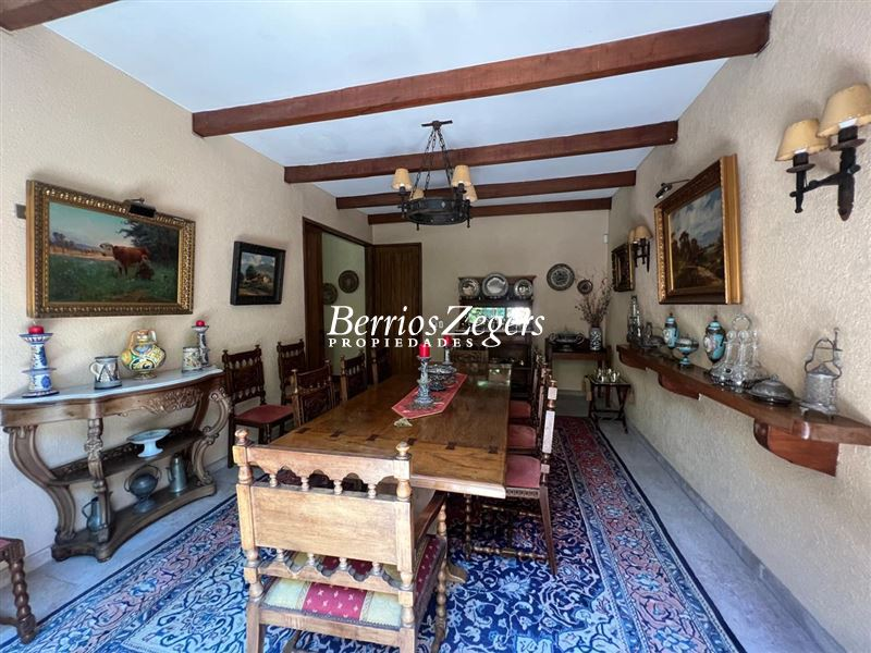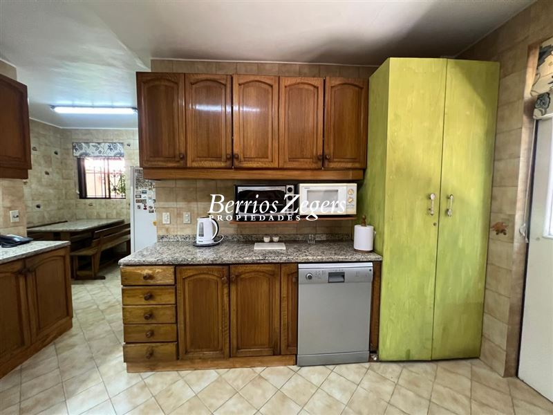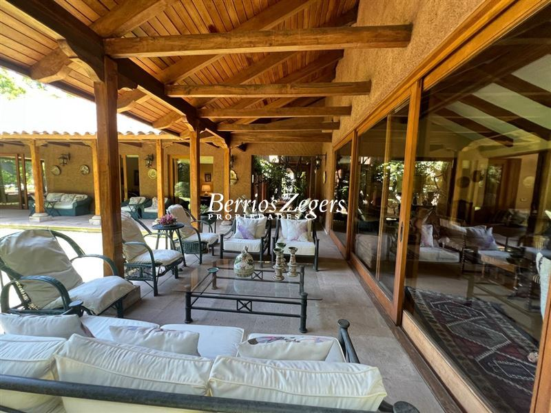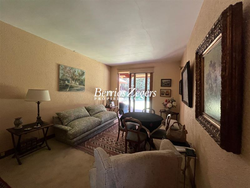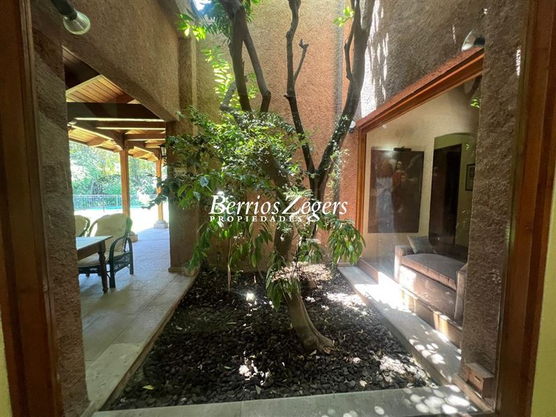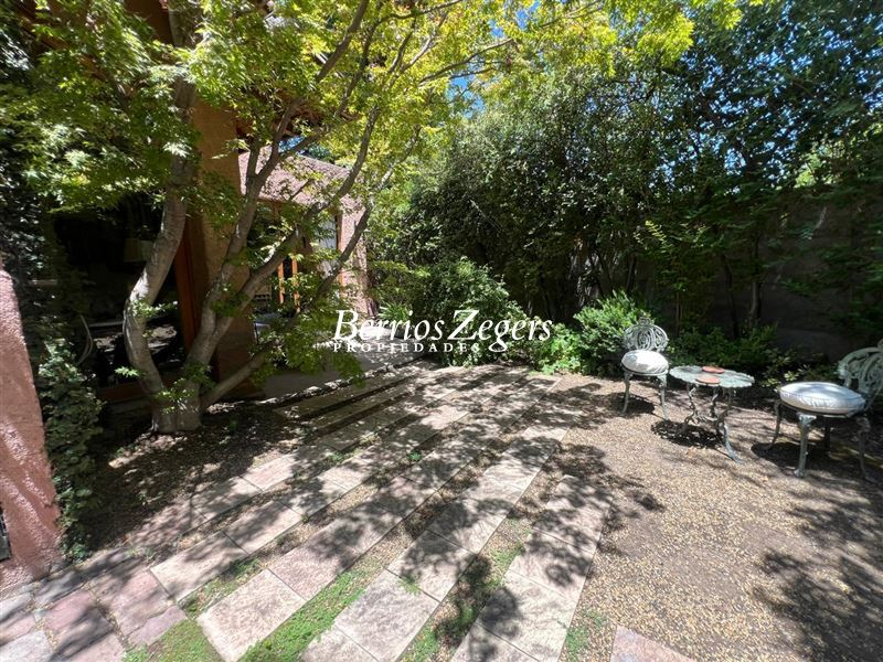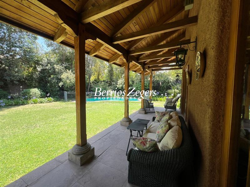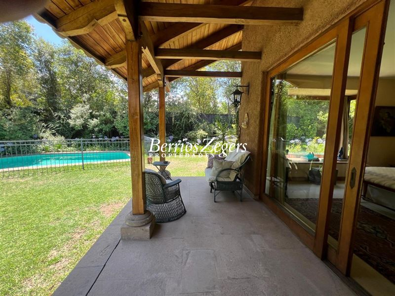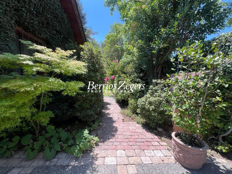 343/1.550 m2 aprox. Preciosa casa de un piso, con amplios espacios y muy bien mantenida, en calle tranquila sin salida, con muy buena conectividad y cercana a colegios.Hall de entrada grande con 2 lindos patios de luz; baño de visita. Gran living con salida a terraza; Comedor con ventanal termopanel y piedra pelequén con salida a otra terraza con quincho; jardÃn formado con riego automático; varias terrazas; piscina; quincho; toda la casa está rodeada de jardines y cuenta con lindos rincones varios.Cocina grande con cubierta de granito, con comedor de diario; despensa; logia y patio de servicio; dormitorio de servicio completo.Dormitorio principal en suite con walk-in closet; 2 salas de estar ó escritorio ó 5° dormitorio.3 dormitorios que comparten 2 baños; con amplios closets.calefacción central por suelo a petróleo; dormitorios alfombrados; todos los baños son con luz natural, incluidos de visita y servicio.amplios estacionamientos con portón automático.