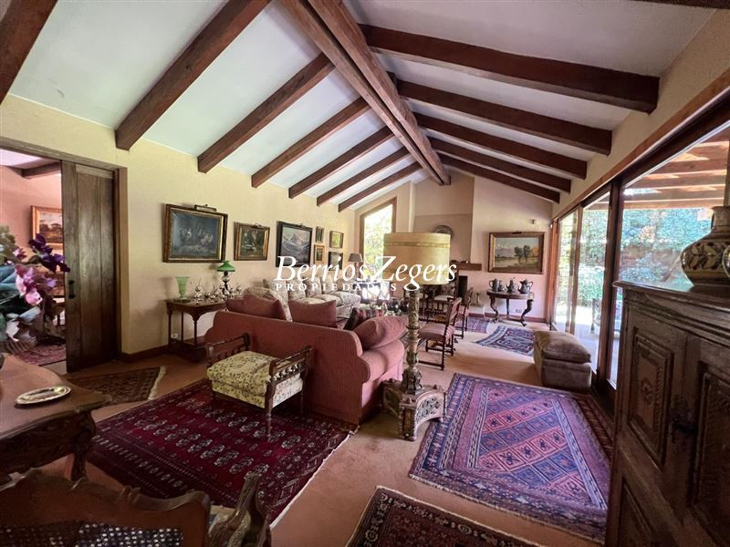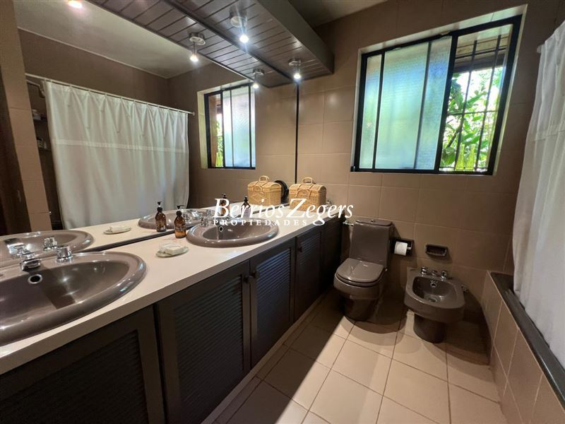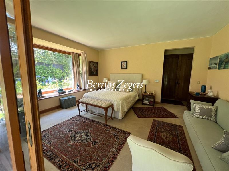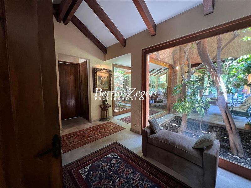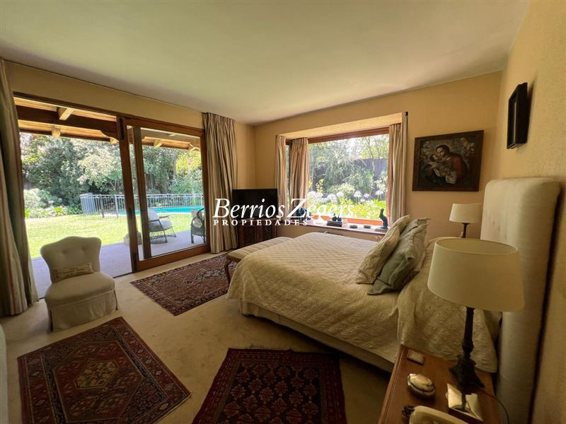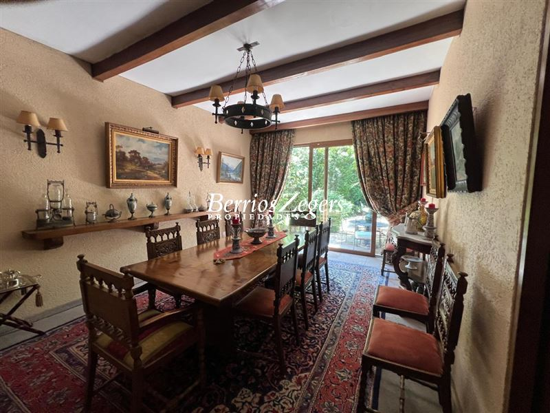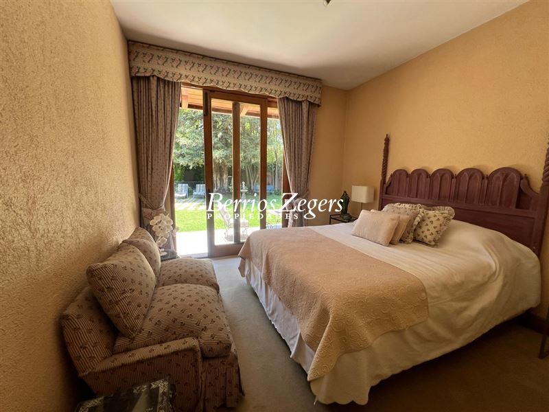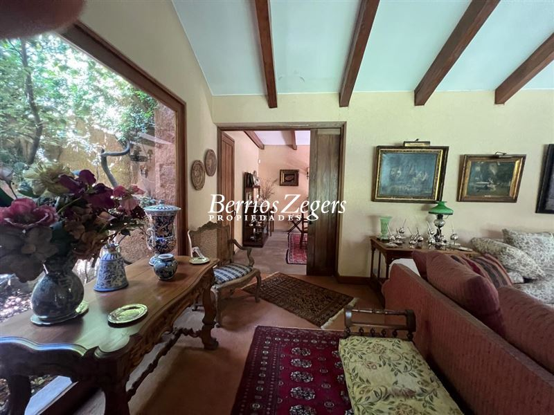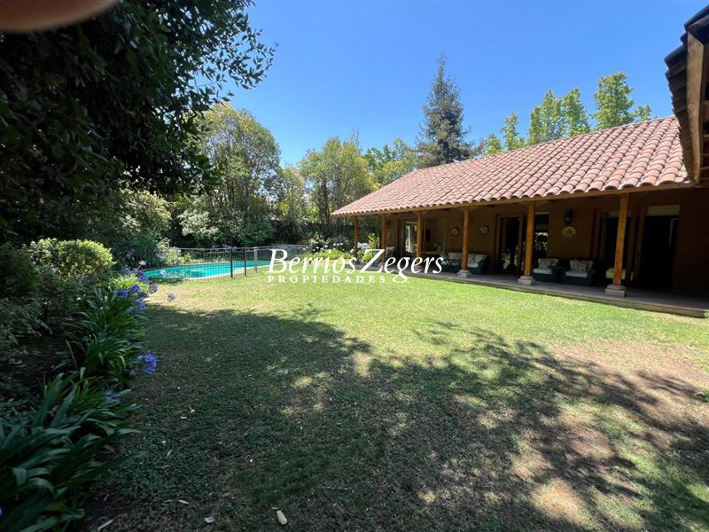 343/1.550 m2 aprox. Preciosa casa de un piso, con amplios espacios y muy bien mantenida, en calle tranquila sin salida, con muy buena conectividad y cercana a colegios.Hall de entrada grande con 2 lindos patios de luz; baño de visita. Gran living con salida a terraza; Comedor con ventanal termopanel y piedra pelequén con salida a otra terraza con quincho; jardÃn formado con riego automático; varias terrazas; piscina; quincho; toda la casa está rodeada de jardines y cuenta con lindos rincones varios.Cocina grande con cubierta de granito, con comedor de diario; despensa; logia y patio de servicio; dormitorio de servicio completo.Dormitorio principal en suite con walk-in closet; 2 salas de estar ó escritorio ó 5° dormitorio.3 dormitorios que comparten 2 baños; con amplios closets.calefacción central por suelo a petróleo; dormitorios alfombrados; todos los baños son con luz natural, incluidos de visita y servicio.amplios estacionamientos con portón automático.