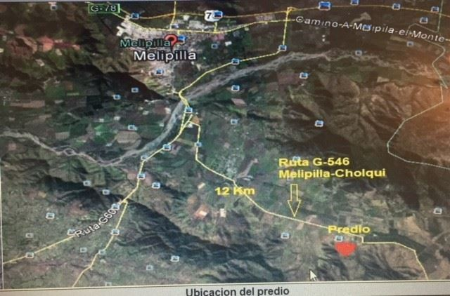 24.10 Has. Predio de lomaje y cerros de secano, ubicado en la comuna de Melipilla, Sector San Carlos de Cholqui...Con subdivisión debidamente aprobada en 6 lotes. Se encuentra en zona de protección ecológica, según el plan regulador de la Región Metropolitana.Hay 3 casas habitacionales y una cabaña de visita...se vende TODO el predio.