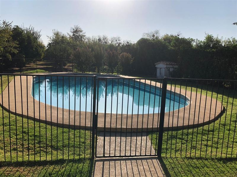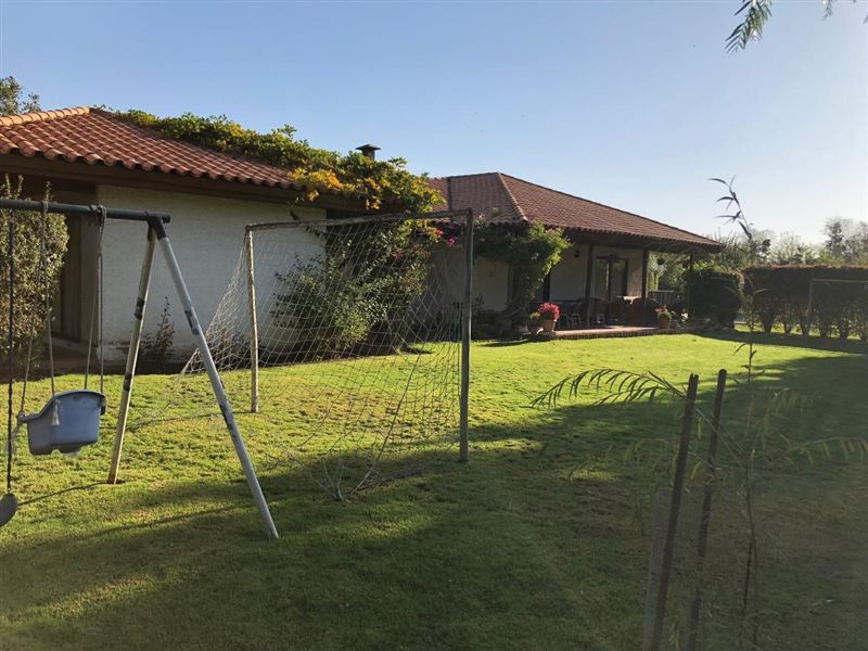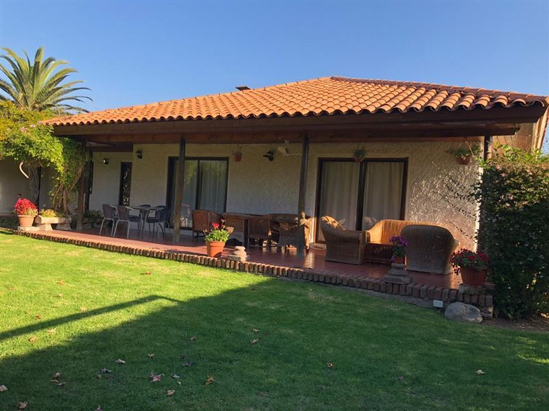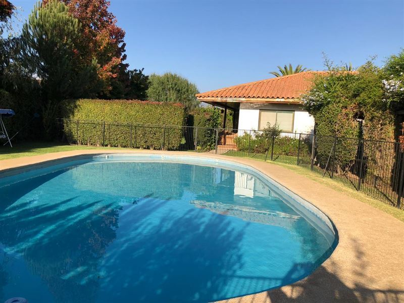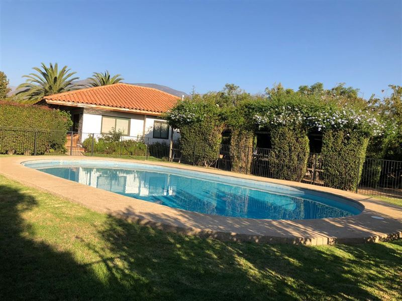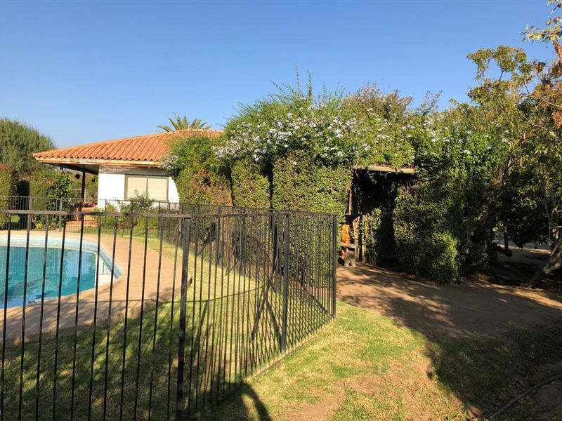 Hermosa parcela de 5.024 m2. Casa estilo colonial en condominio cerrado con una superficie construida de 265 mts2.Cuenta con red de agua potable y electricidad.Piscina de 50 m3, áreas de juego y arboles frutales.Porche cubierto, living, comedor, cocina con desayunador, loggia, 6 dormitorios, 3 baños, dormitorio de servicio, baño de servicio, terrazas, estar - escritorio.