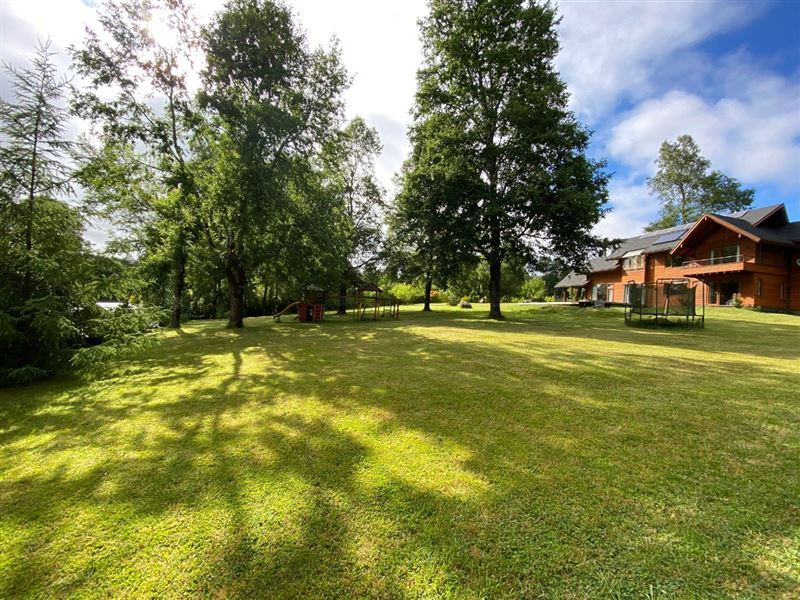 Hermosa casa camino Villarrica - Pucón. (sector Colegio Alemán )280m2 construidos, 5000 terreno. Hall, living comedor, 4 dormitorios, 4 baños. cocina totalmente equipada, lavandería, bodega, sauna. Termopaneles, Paneles Solares, calefacción, estanque de agua, riego automático Arbustos, juegos infantilesPortor automático.