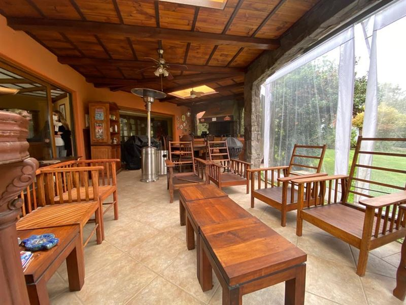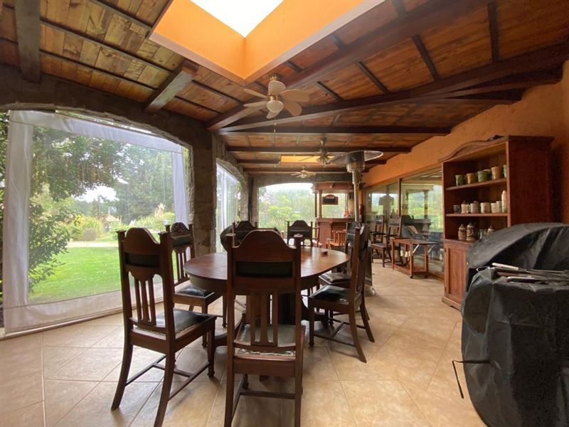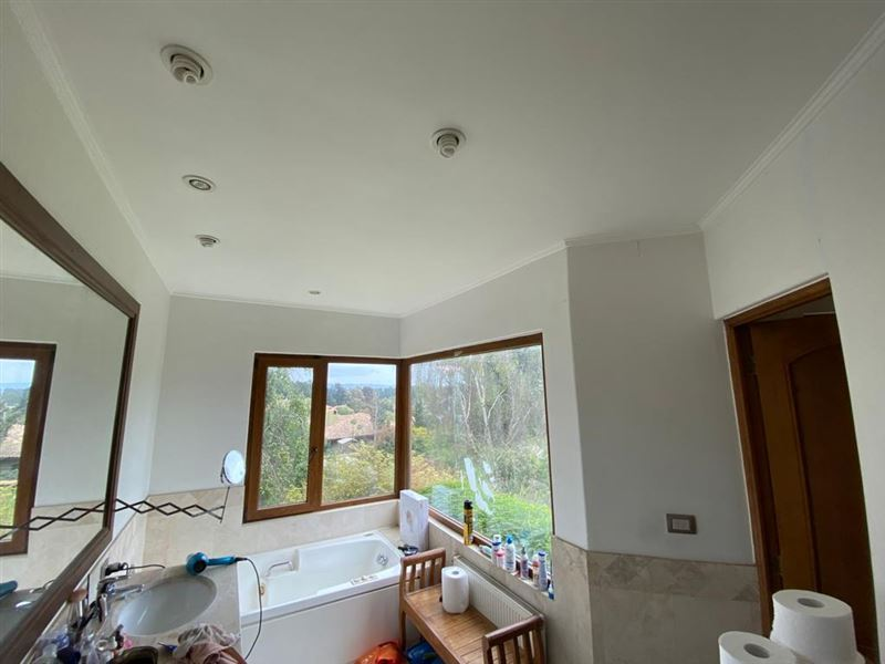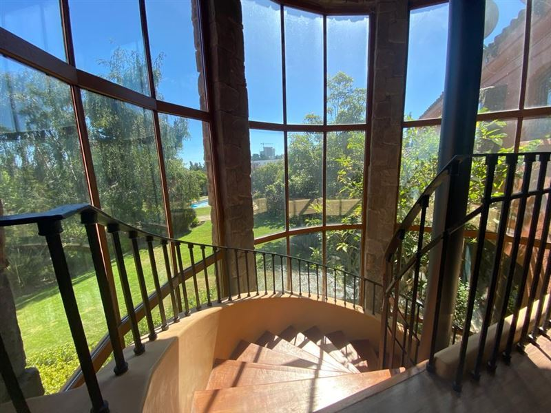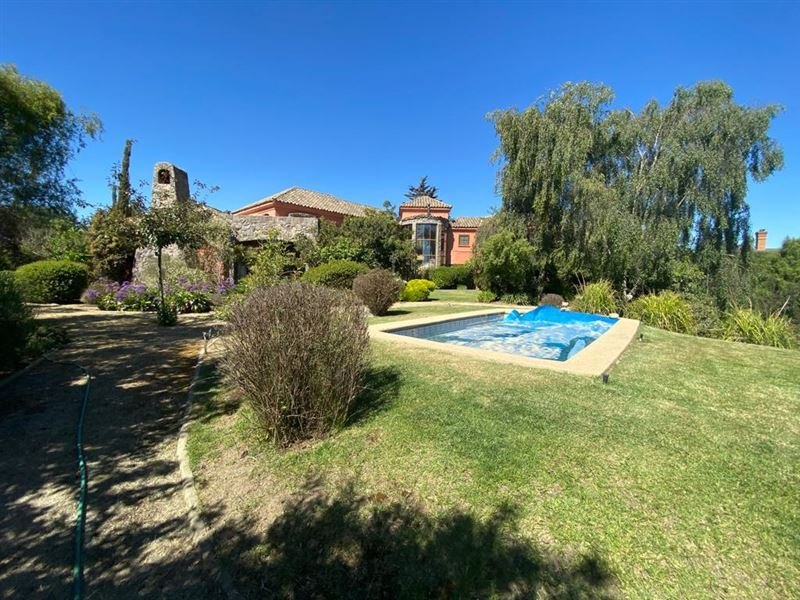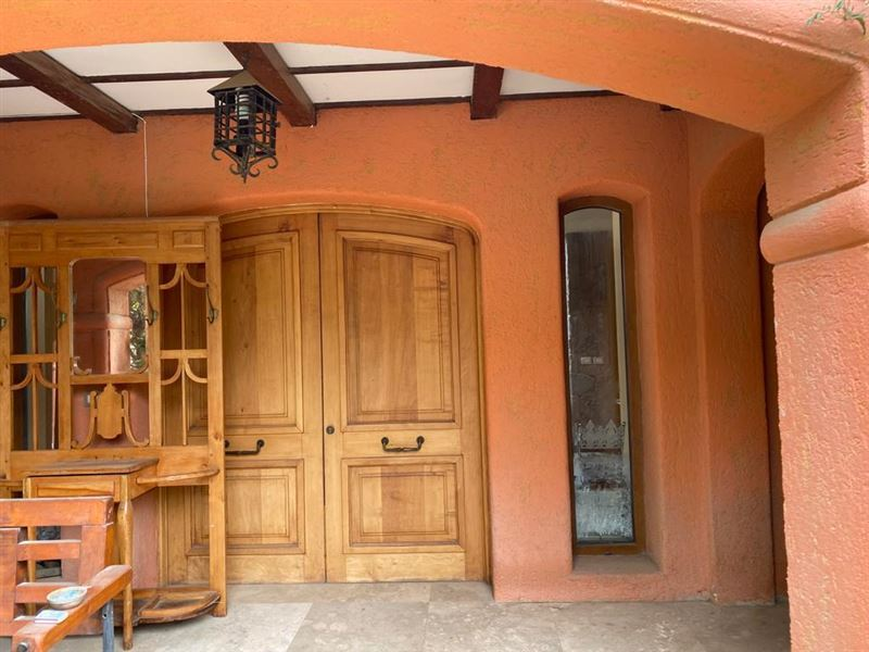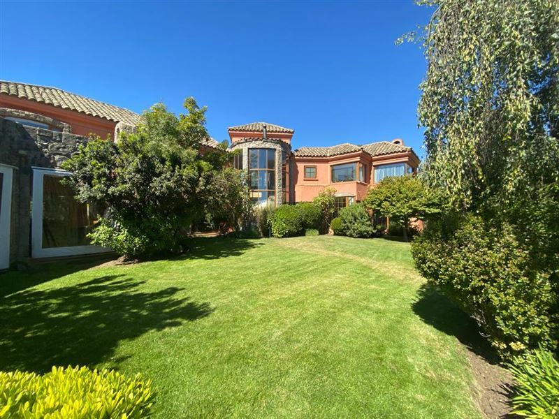 380/3000 M2 aproximado, Espectacular casa estilo Provenzal en exclusivo sector Los Pinos un lugar residencial cercano a comercios y colegios.Hall de entrada doble altura, baño de visita, amplios recibos separados luminosos, terrazas amplias con quincho, Escritorio, Gran sala de estar, dormitorio de visita.gimnasio. 2° piso: Gran dormitorio principal en suite con walk-in closet, además 5 dormitorios con 2 baños.Todos los baños son con luz natural; ventanales termopanel; calefacción por radiadores y estufa boscasLindo jardín formado con riego automático, piscina temperada, huertas, juegos infantiles.