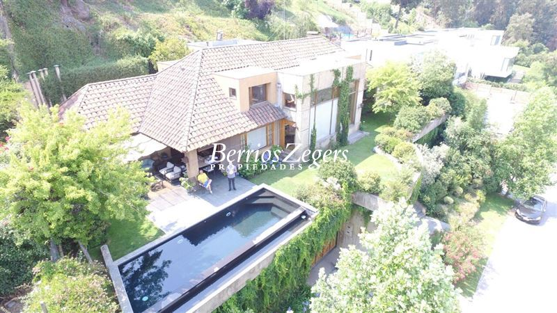 Estupenda casa Lo Curro, hermosa vista a Santiago 510/ 1000 m2 aproxAccesos de doble altura, amplios espacios, recibos separados con altura. Estar familiar, 5 dormitorios, 4 baños.Principal en suite con salida a jardín, terrazas, quincho, piscina. Amplia cocina, servicios completos, hermosa fuente de agua.Garage cerrado para 4 autos, espacio para taller, bodega. Ascensor que conecta desde garage a 2do nivel Calefacción central por radiadores con cuatro zonasSeguridad 24/7, proxima a caseta de guardia.
