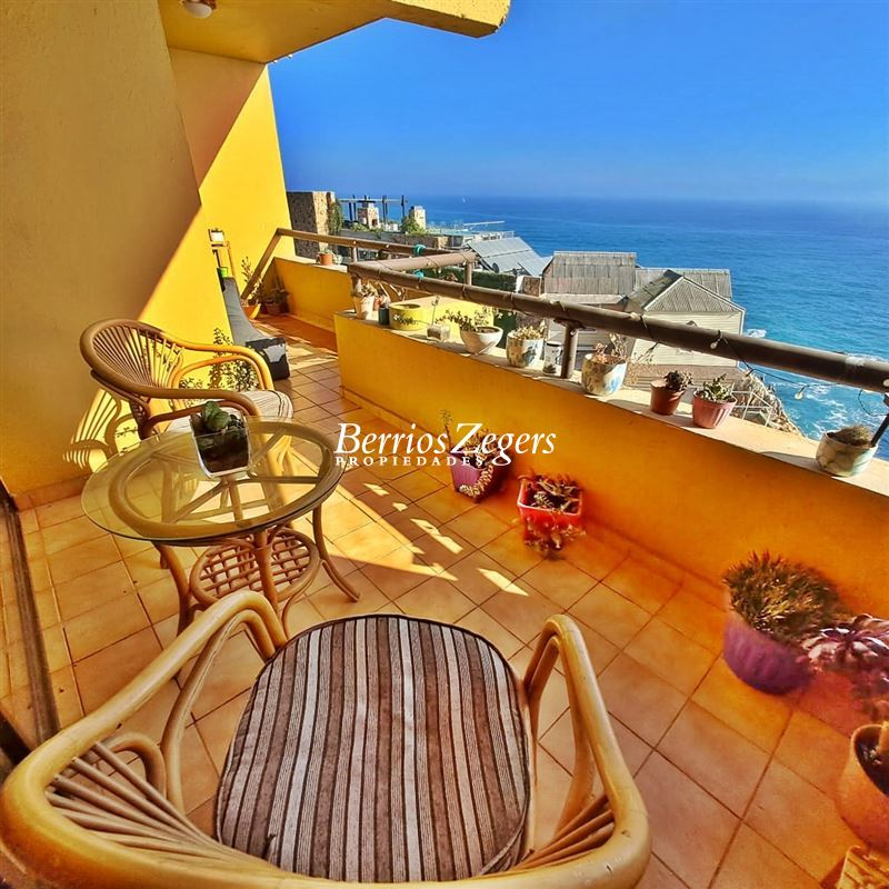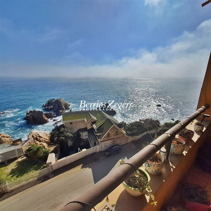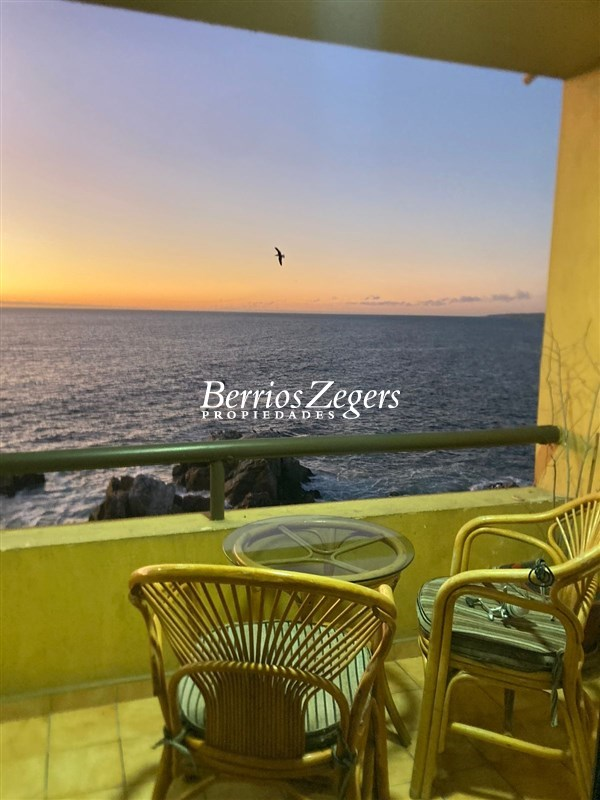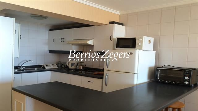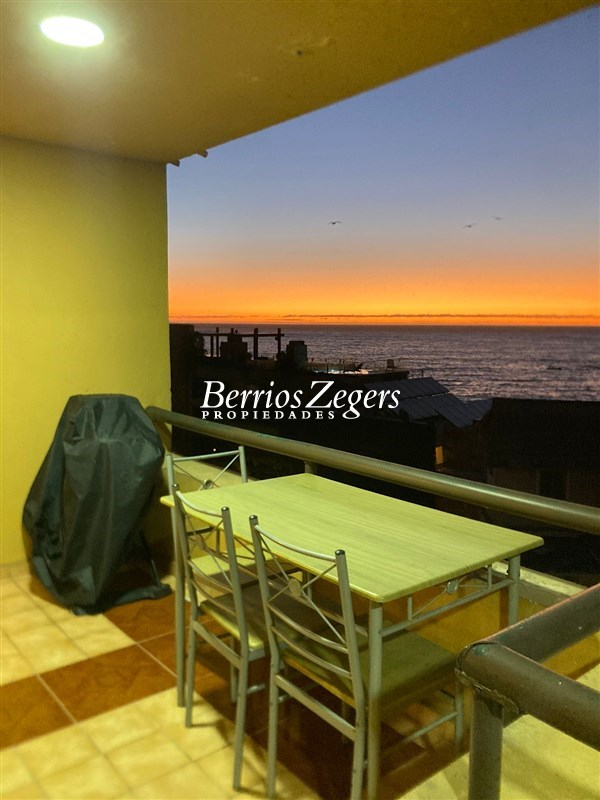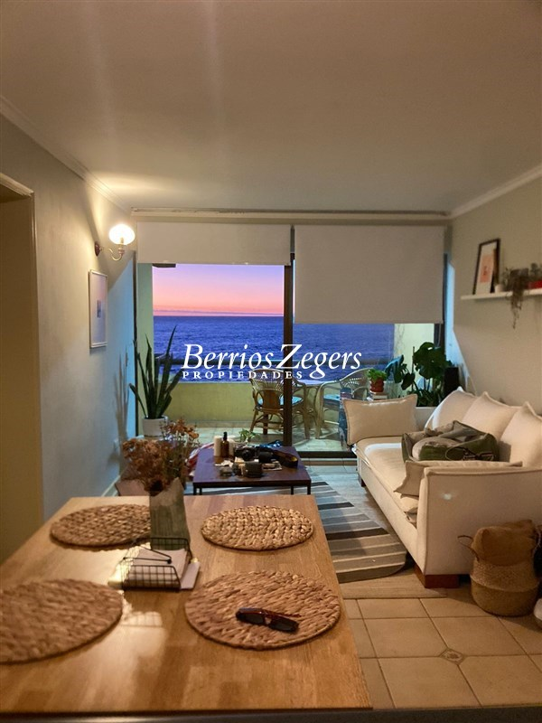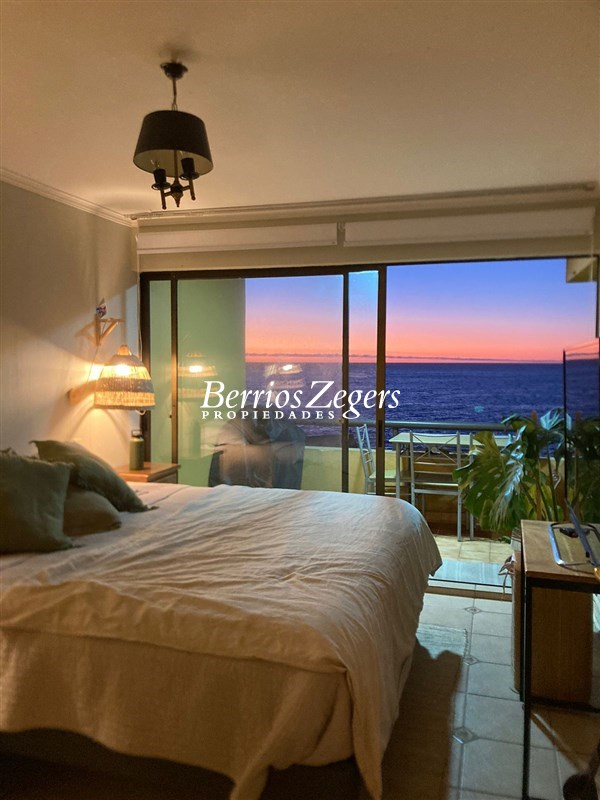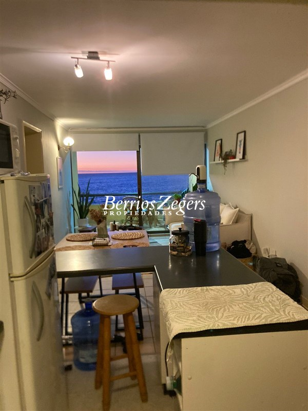 Departamento en arriendo frente al Hotel Radisson de Concón, a pocos pasos de Playa Amarilla, Vista en primera línea al mar. Living Y comedor con cocina integrada, un dormitorio en suite, todo con salida a una amplia es espaciosa terraza, 1 bodega y estacionamientos tándem. semi amoblado.