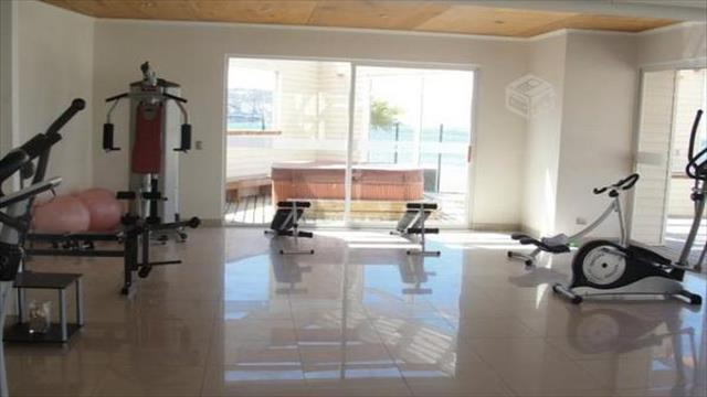 90 m2 . Precioso depto. en primera línea, hermosa vista a la bahía, impecable, recién pintado y completamente renovado.Hall de entrada, recibos con salida a terraza, 3 dormitorios (1 en suite y con salida a terraza) cocina con loggia incluida.piedra pizarra es el piso de la terraza; calefacción central por radiadores, 1 estacionamiento y 1 bodega grande. Condominio tiene hidromasajes, gym, piscina, quincho y bodegas para guardar kayac, estacionamiento visitas, seguridad y conserjería 24/7.se vende totalmente amoblado.disponibilidad Inmediata!!