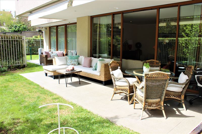 128/ 112M2 Aproximados, 240 M2 en total. .Excelente departamento con jardín privado. Hall de entrada, baño de visitas, living-comedor juntos con salida a terrazas y lindo jardín . Cocina completamente equipada mas amplia logia. Sector dormitorios ( todos con salida a jardín ).Dormitorio principal en suite con w-closet, mas 2 amplios dormitorios y un baño, todo el depto. con ventanas termopanel, calefacción por radiadores, riego automático. El edificio cuenta con estacionamientos de visita, piscina quincho, sala de eventos. Excelente ubicación. REALMENTE LINDO. NO DEJES DE VISITAR !!!!!!!!