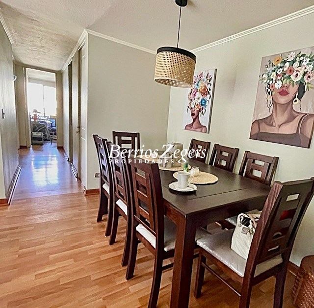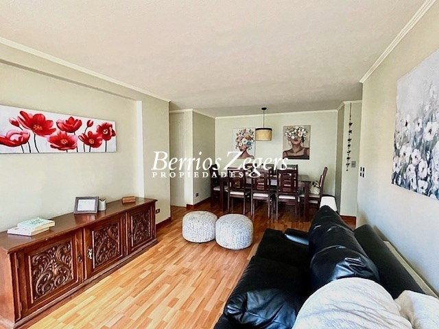 Acogedor y luminoso departamento de 3 dormitorios, 2 baños en venta. Este impecable y cómodo departamento cuenta con Living Comedor con salida a terraza, 3 dormitorios, 1 en suite, 2 baños completos, cocina equipada con muebles de base y muro, encimera de gas, campana, lavaplatos de acero inoxidable, loggia integrada, 1 estacionamiento, 1 bodega. El edificio de 7 pisos con 2 ascensores panorámicos se encuentra situado en un condominio rodeado de lindos jardines. Tiene piscina, club house y conserjería 24/7, De ubicación excelente ya que se encuentra cercano a Supermercados. Parques, Mall Plaza Los Dominicos, Portal La Reina y Street Center. Con gran conectividad.